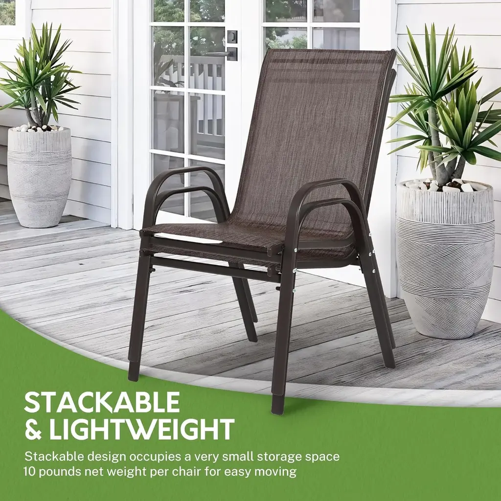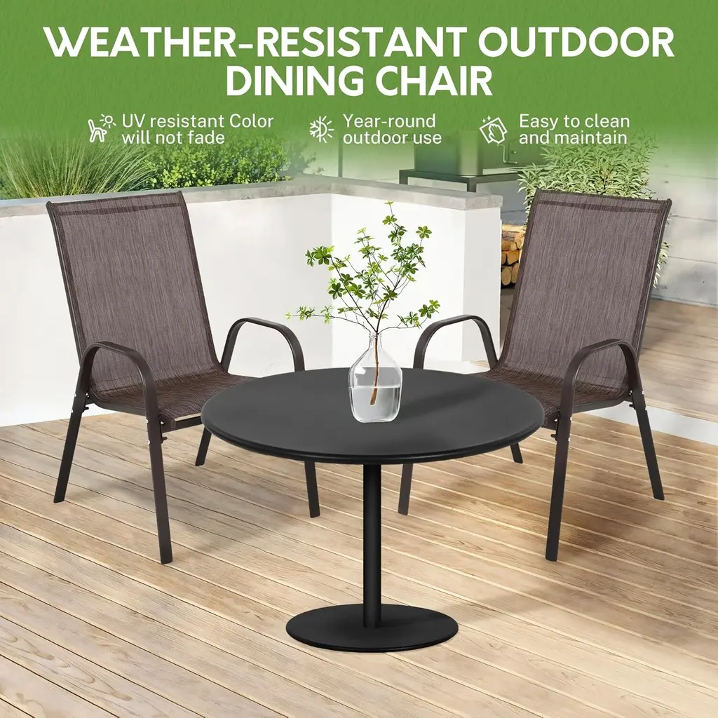 Outdoor Patio Breathable Textilene Fabric Dining Chairs Set Of 4/2 With Armrest High Backrest For Garden - Brown-2Pcs