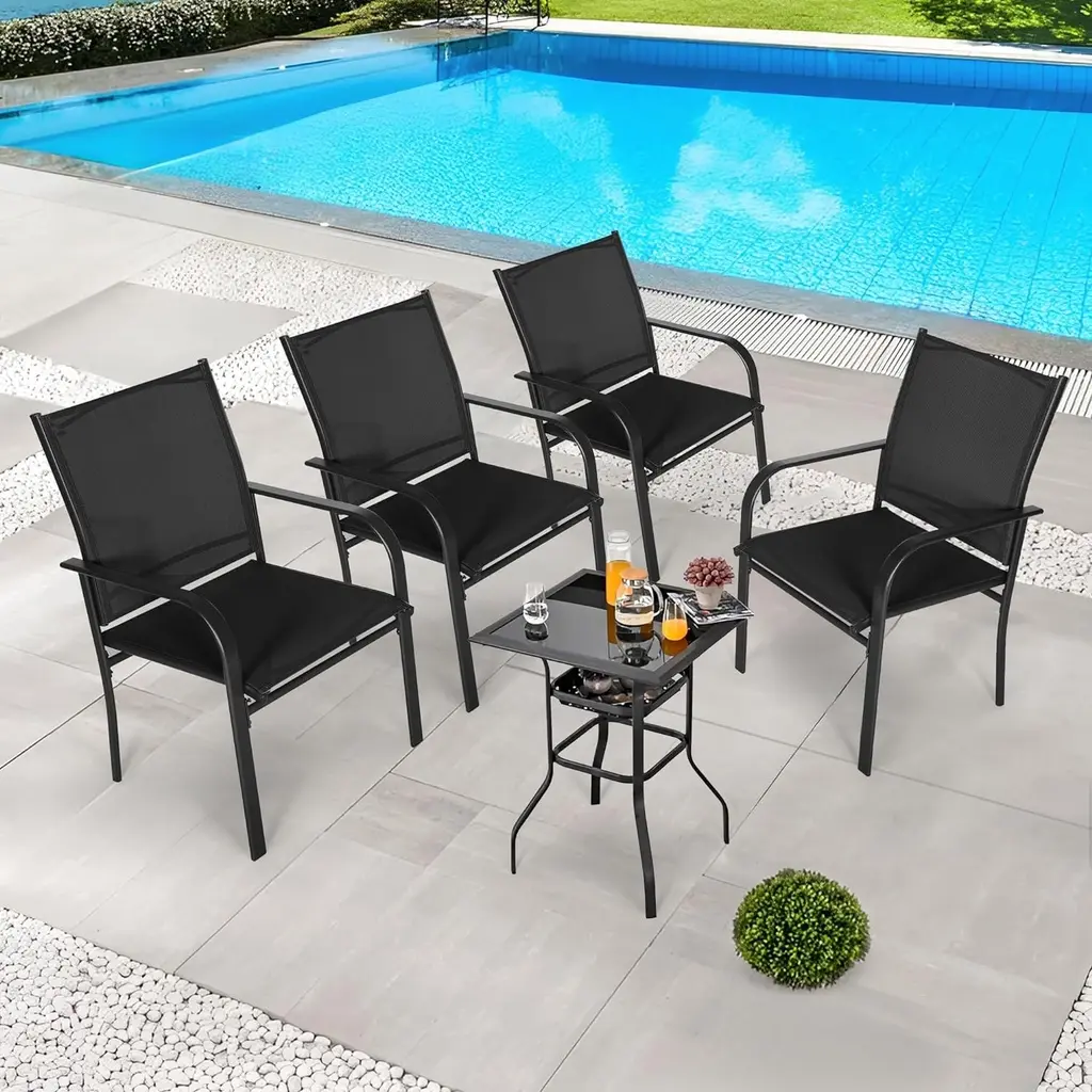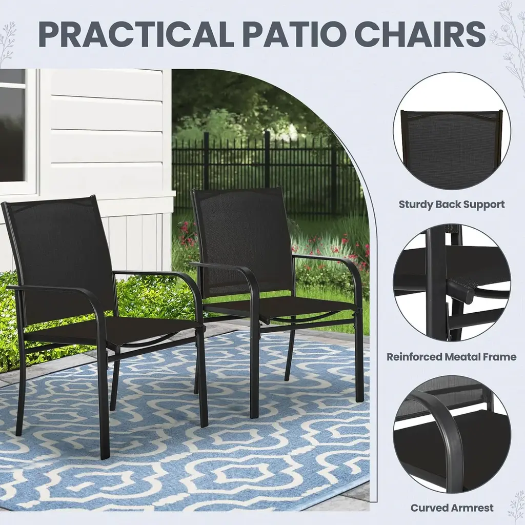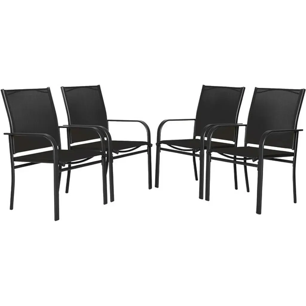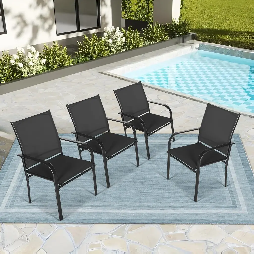 Outdoor Patio Dining Chairs Set Of 4, Metal Frame Textilene Fabric Chairs With Armrest - Black