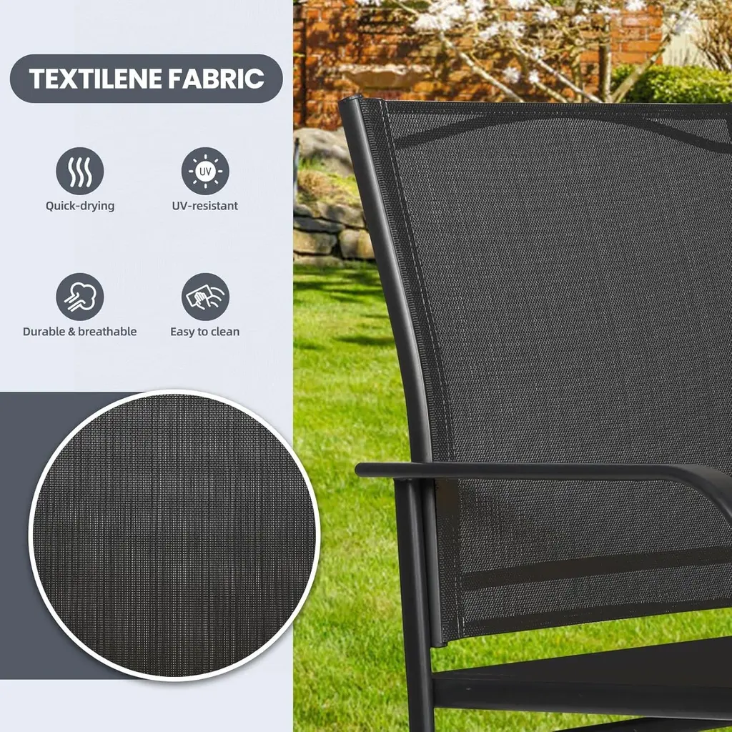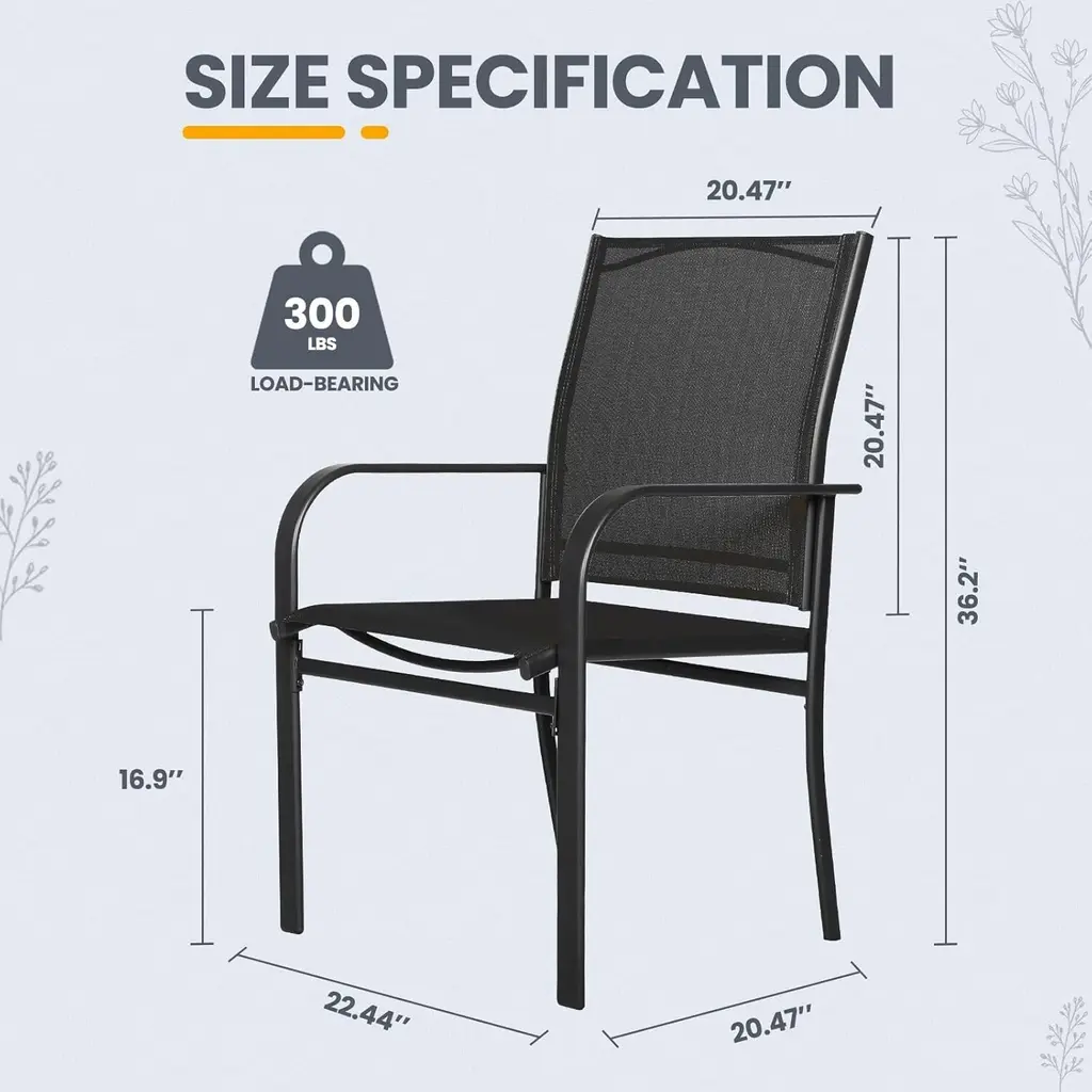 Add a touch of relaxation to your patio, garden, backyard, poolside, or porch with our outdoor dining chairs. Perfect for unwinding, reading, lounging, sunbathing, and taking a break, these well-crafted patio chairs are versatile for all seasons. The backrest and seat are crafted from premium fabric that is durable, breathable, and quick-drying, providing a cool and comfortable seating experience even on hot summer days. Additionally, the tear-resistant fabric ensures these chairs have a long service life, making them a reliable choice for your outdoor seating needs.Features:
