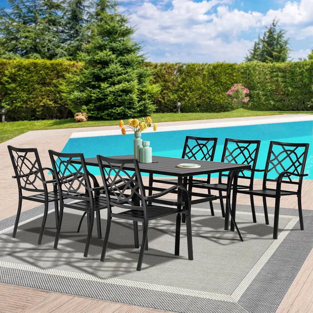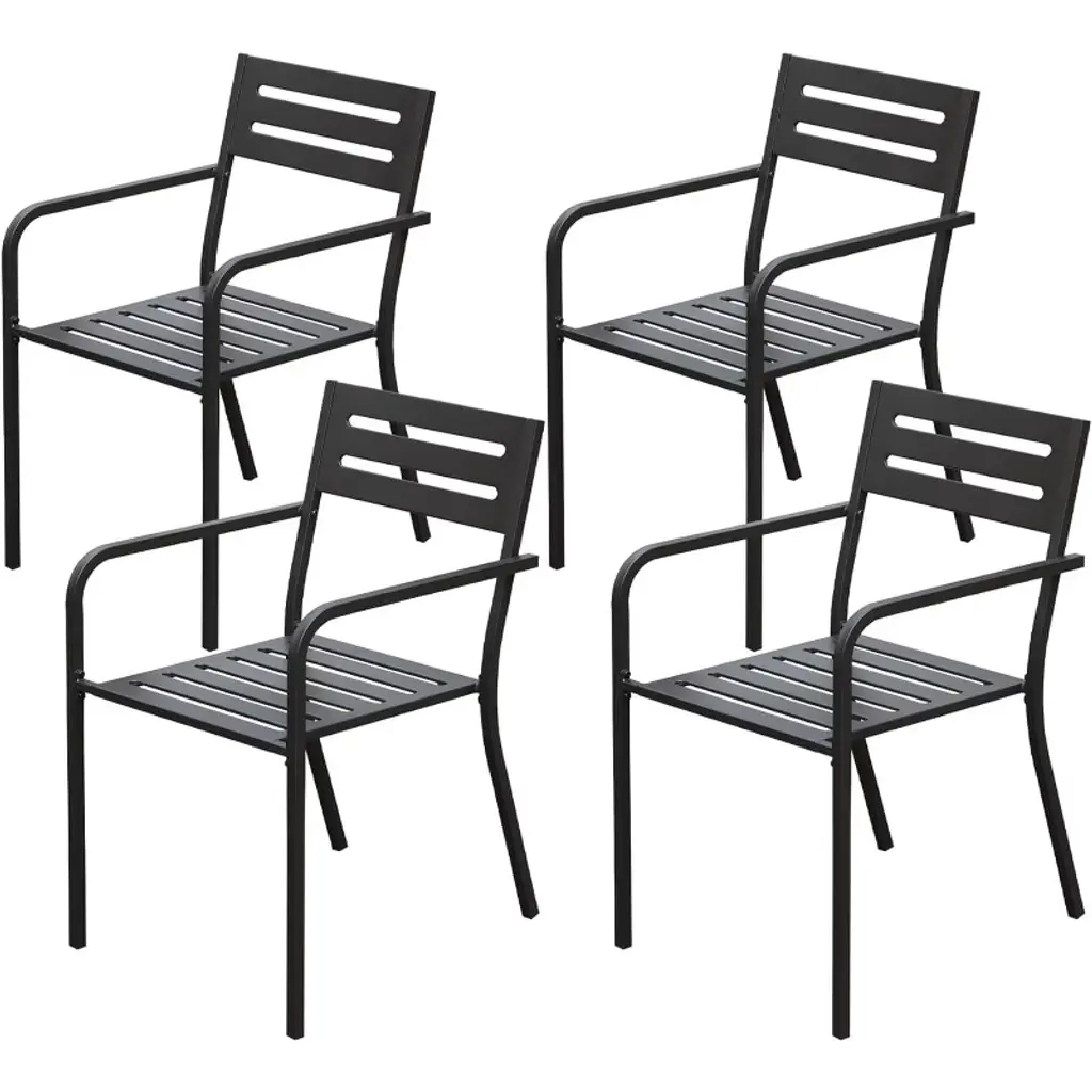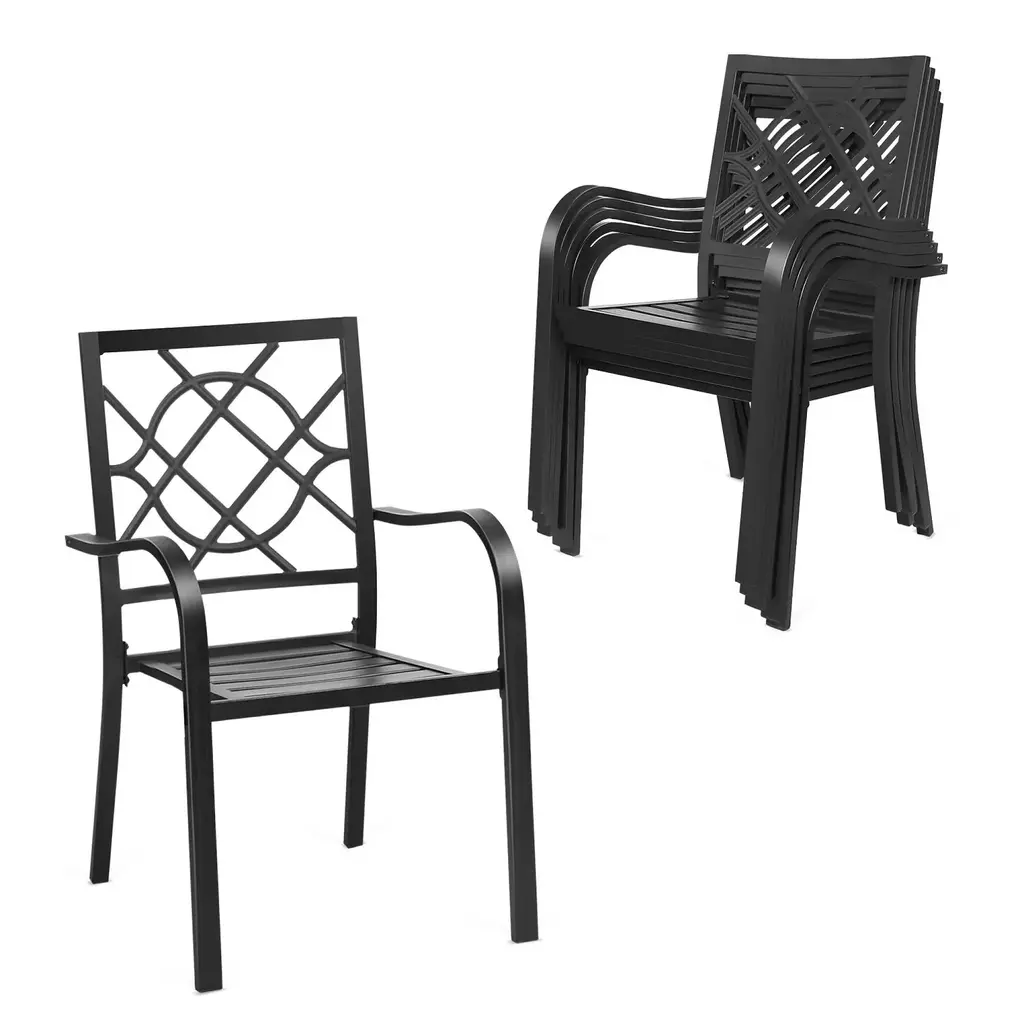 Outdoor Patio Metal Stackable Dining Chairs With Armrest Set Of 4/6 - 6-Piece