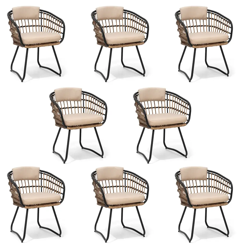 Outdoor Patio Wicker Dining Chairs Pe Rattan Seating Set With Cushion - Beige - Set Of 6