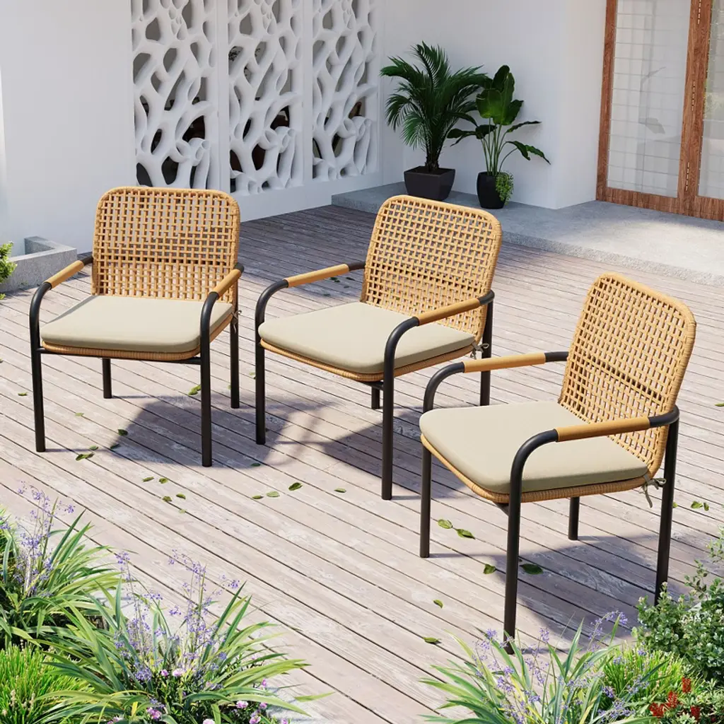 If you're looking for a stylish and comfortable outdoor dining set, look no further than the modern and minimalist dining chairs. Indulge in the epitome of natural elegance with our PE rattan chair – a fusion of casual charm and sophisticated allure that effortlessly elevates any indoor or outdoor setting. Enjoy your backyard with these elegant and cozy chairs.Features:Dimensions: