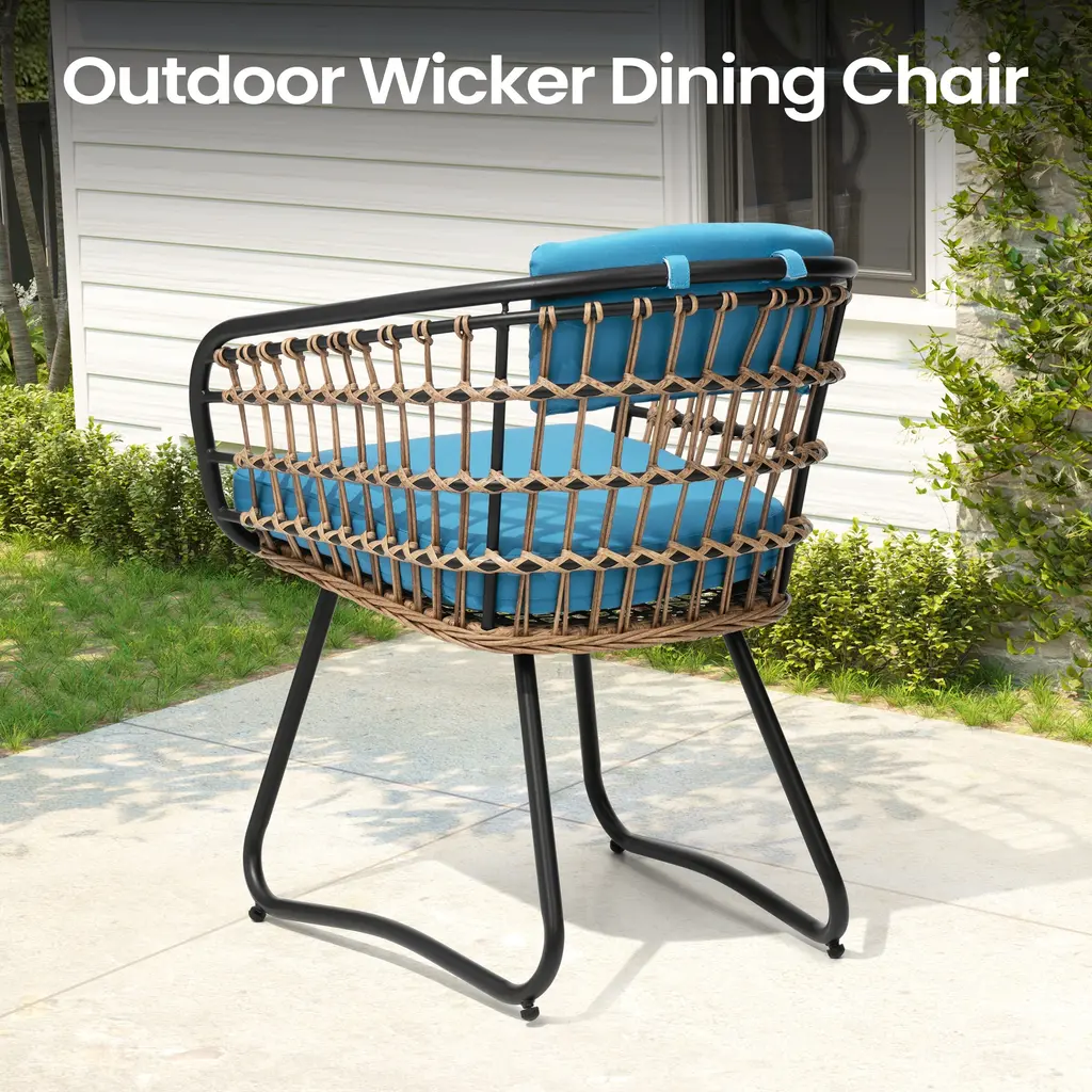 Outdoor Patio Wicker Dining Chairs Pe Rattan Seating Set With Cushion - Blue-Setof2