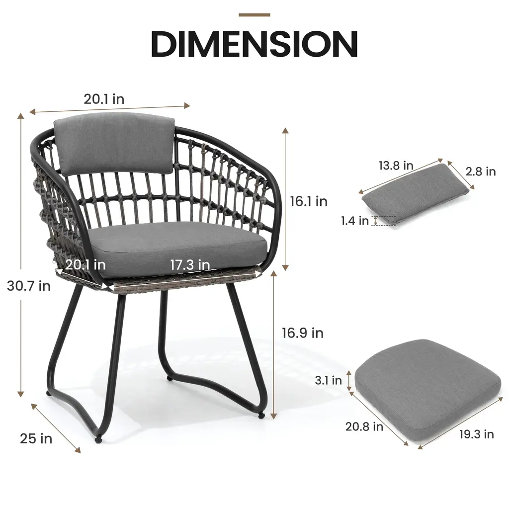 If you're looking for a stylish and comfortable outdoor dining set, look no further than the modern and minimalist dining chairs. Indulge in the epitome of natural elegance with our PE rattan chair – a fusion of casual charm and sophisticated allure that effortlessly elevates any indoor or outdoor setting. Enjoy your backyard with these elegant and cozy chairs.Features:Dimensions: