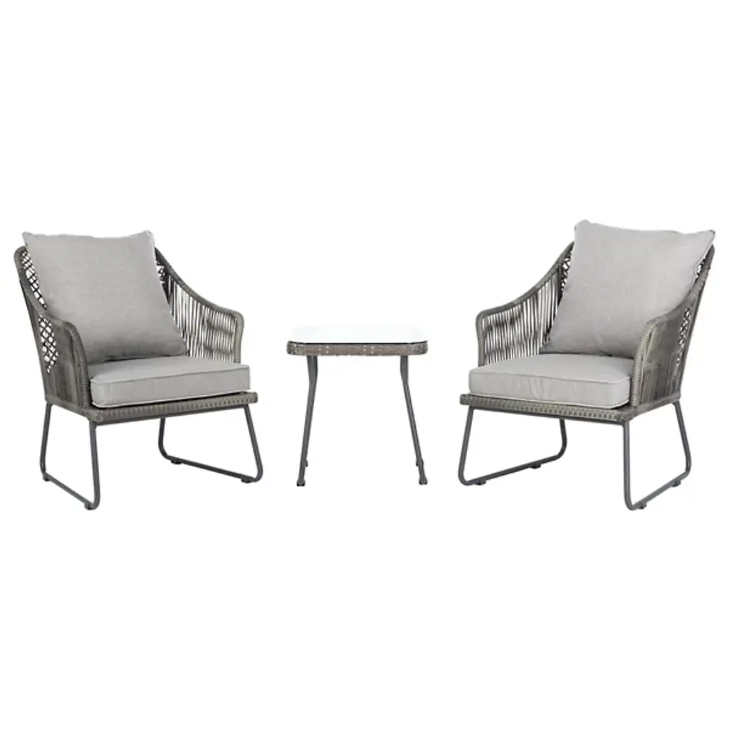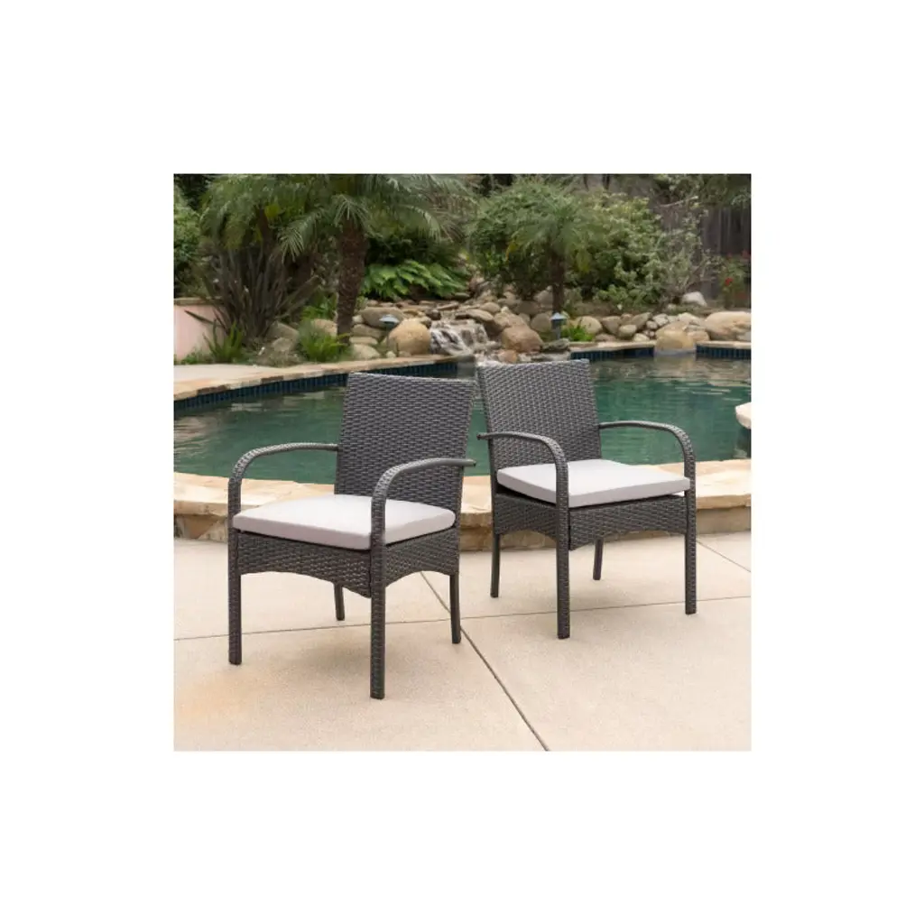 Outdoor Patio Wicker Dining Chairs Pe Rattan Seating Set With Cushion - Grey - Set Of 3