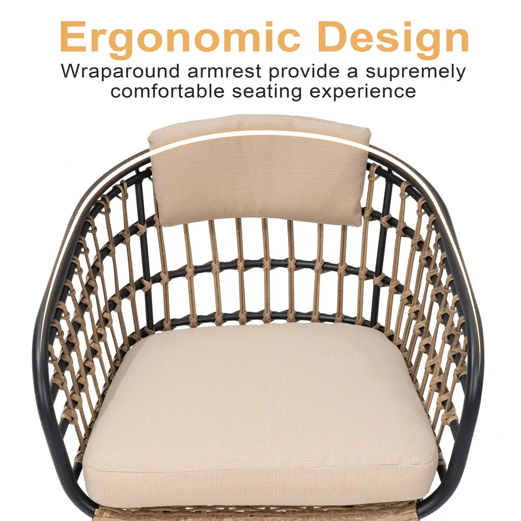 Outdoor Wicker Chairs Patio Dining Chairs Cushioned Pe Rattan Seating Set - Beige, 6Pcs
