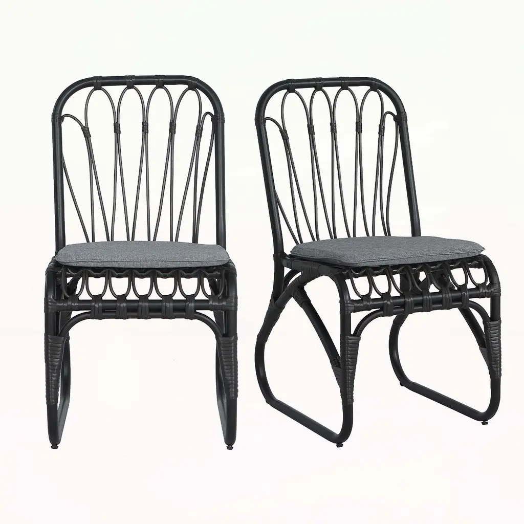 Outdoor Wicker Dining Chairs Set With Washable Cushions For Various Spaces - Black+ Gray