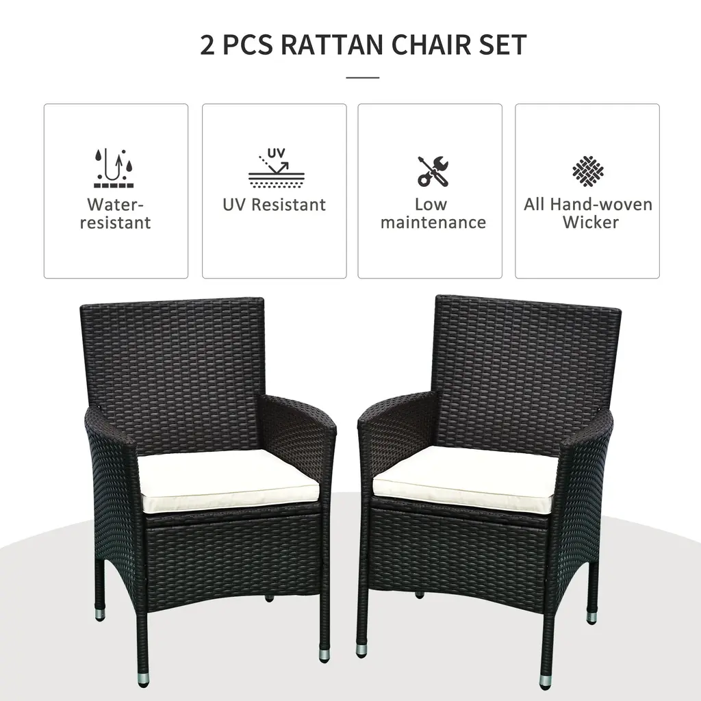 Outsunny 2 Pcs Rattan Wicker Dining Chairs With Cushions And Anti-Slip Foot (Excluding The Table) - Black