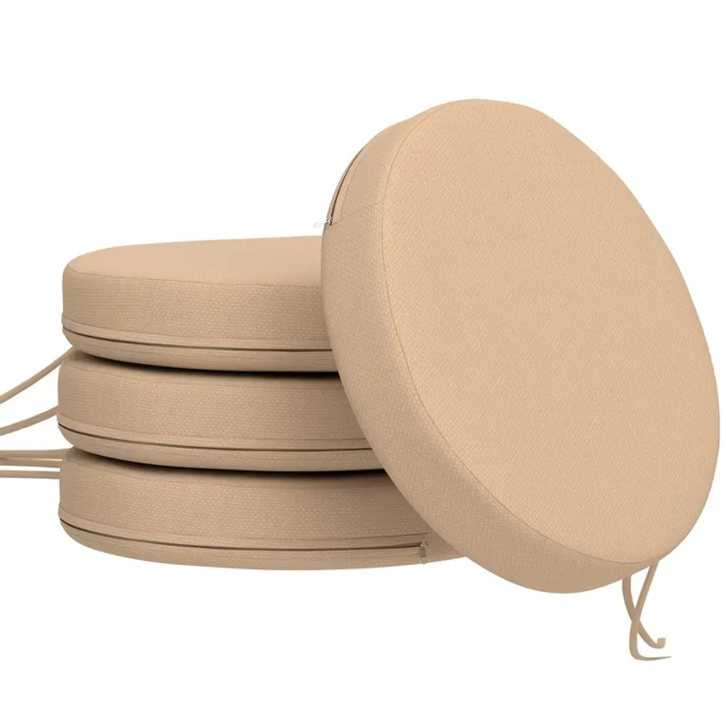 Outsunny Outdoor Chair Cushions Set Of 4, Round Seat Cushions For Dining Chairs Bistro Chairs With Machine Washable Cover, 15" X 15" X 3", Cream White