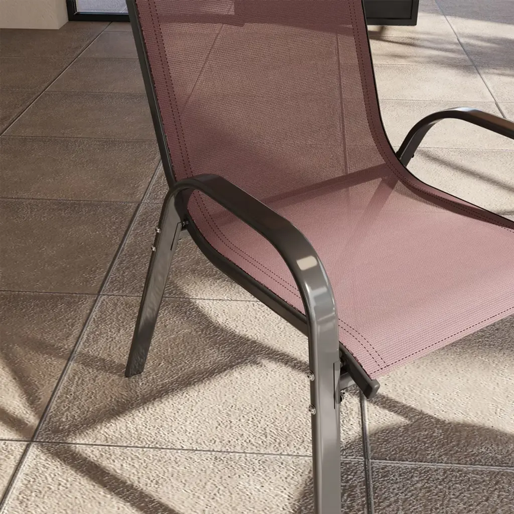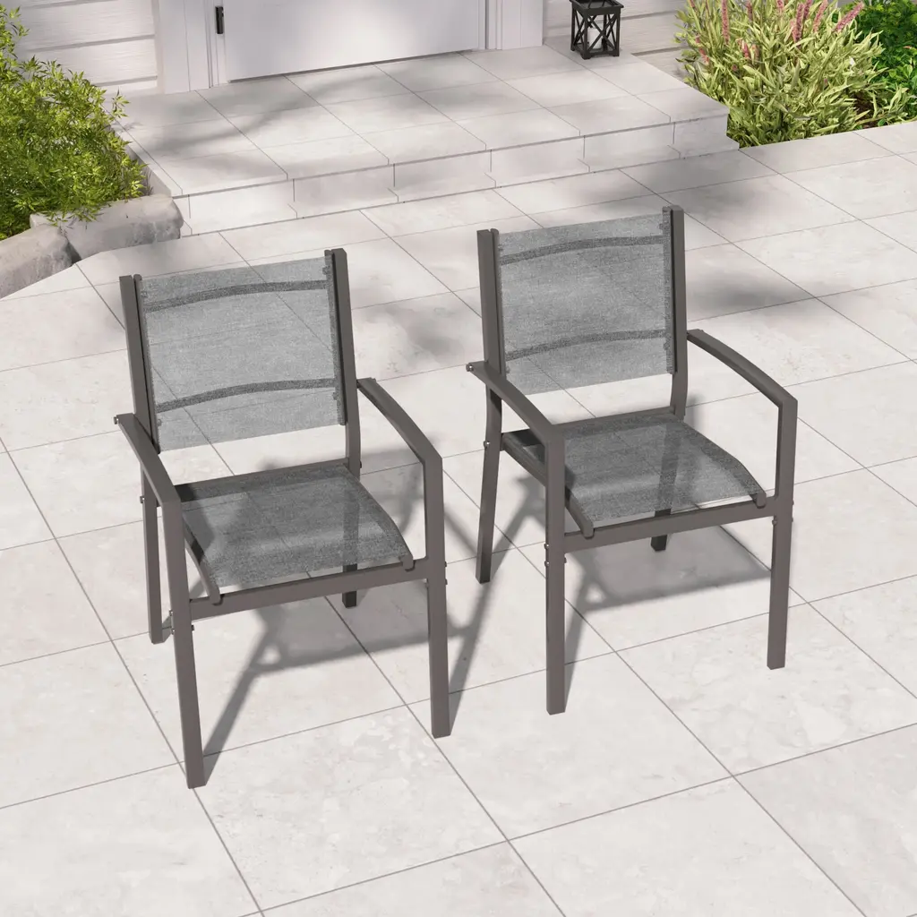 Upgrade your outdoor meals with Outsunny's stylish stacking dining chairs set. Each outdoor dining chair features a breathable mesh fabric seat, sloping high back, and supportive curved armrests, offering exceptional comfort for long and leisurely dining sessions. Designed for easy stacking, they save space when not in use. A practical and space-efficient addition to your garden, patio, deck, or lawn!