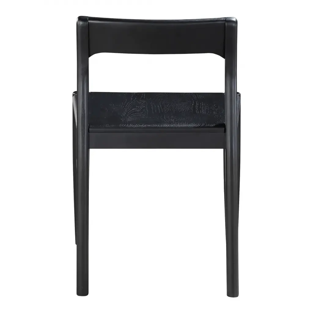 Available in blackened oak, natural oak and walnut, the Owing dining chair is a sophisticated spin on the traditional. Its mid-height, curved, open-back design combines comfort with casual appeal while its solid wood frame creates a timeless, mid-century silhouette—a seat that is as distinguished as it is inviting.