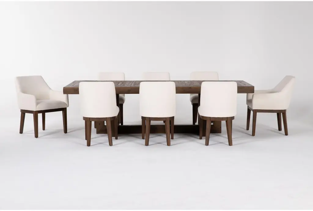 Palazzo Brown Natural Rectangular Solid Pine Wood 106" Dining Table With Side + Armchair Set For 8 | Trestle