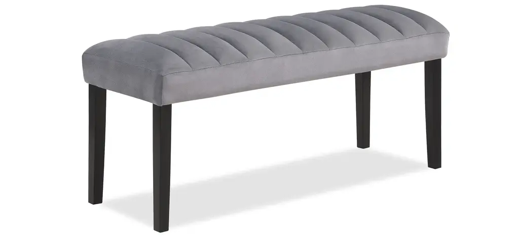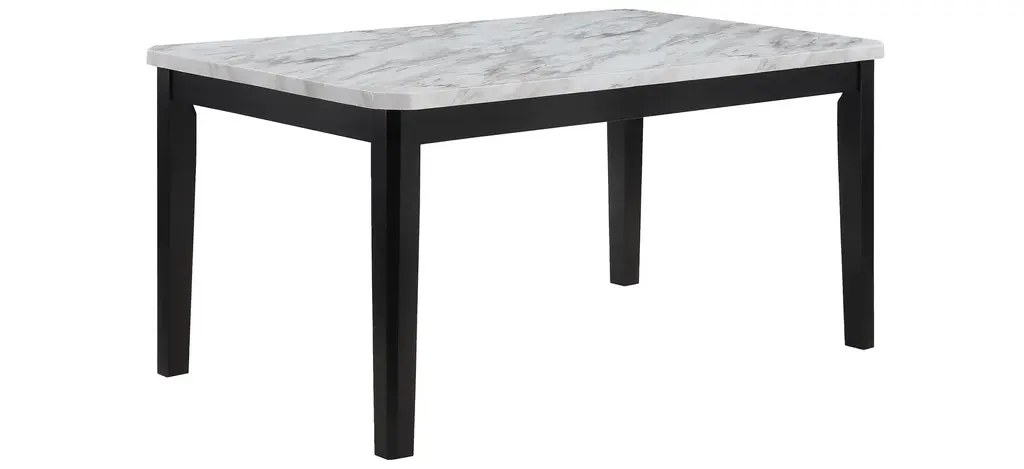 This Pascal Dining Set -6pc. is a perfect blend of traditional and modern design elements. The black finish on the table legs contrasts beautifully with the white marble-like top, creating a stylish and eye-catching piece of furniture. With this transitional dining table, you can expect a blend of classic elegance and modern functionality in your dining area. The chair is upholstered in a soft, grey-colored velvet that is both durable and comfortable to sit on. The standout design feature of the chair and bench is the channel tufting on the seats, which adds a touch of texture to the design making this perfect for both formal and casual dining settings.