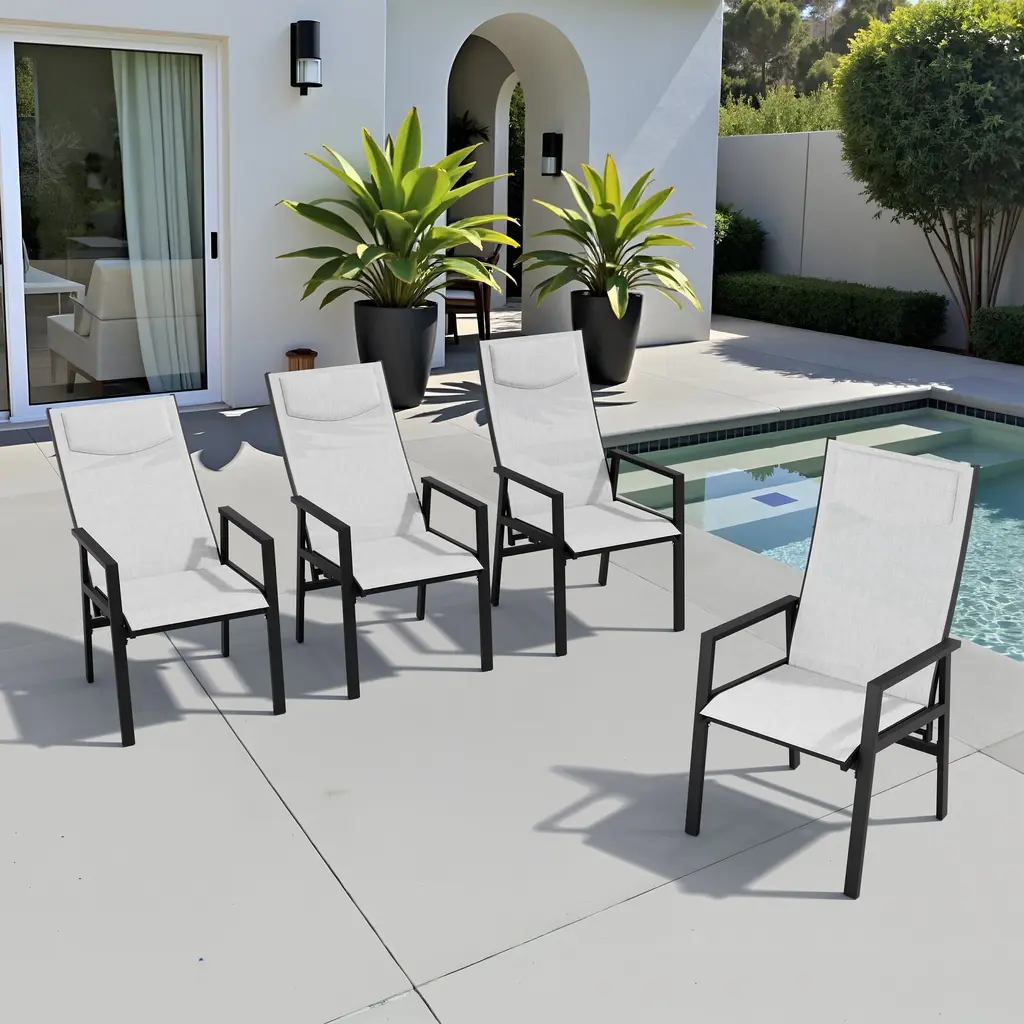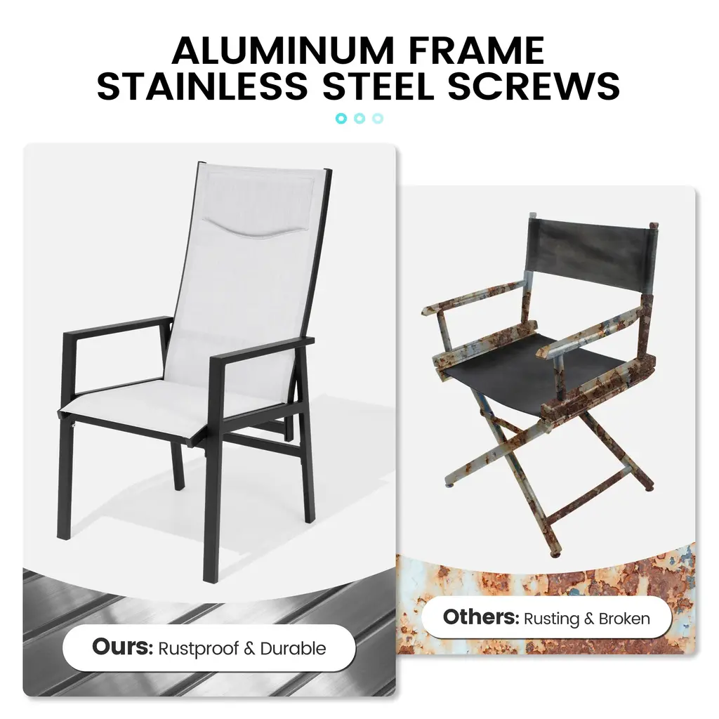 This portable patio dining chair set can meet your various needs. You can place it in the garden, backyard, poolside, beach or any other place you like. Thanks to the textilene seat design, you don't need any cushions. The backrest can be easily adjusted using the knob under the seat. This high back dining chair set with modern design will be a good addition to your leisure time.Feature:Specification: