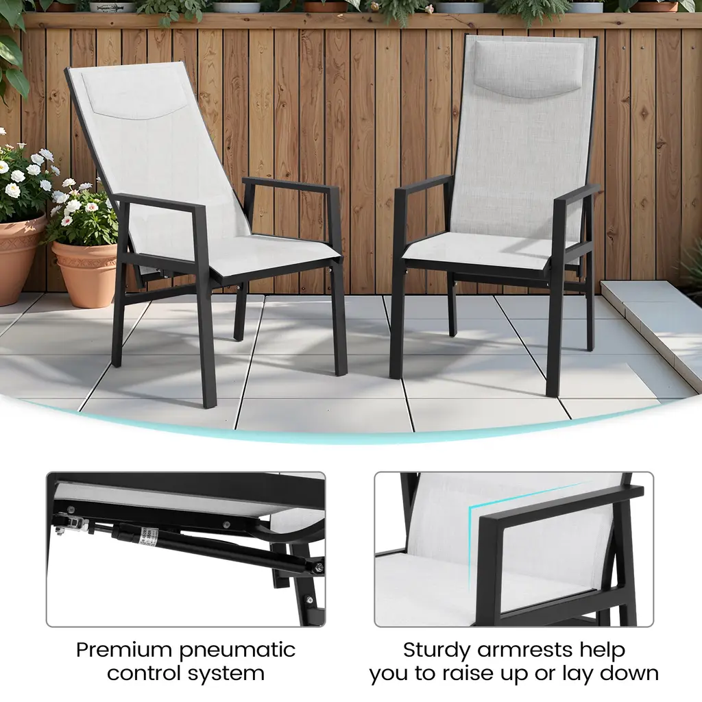 Patio Aluminium Folding Dining Chairs With Adjustable Back - Light Grey - 6Pc