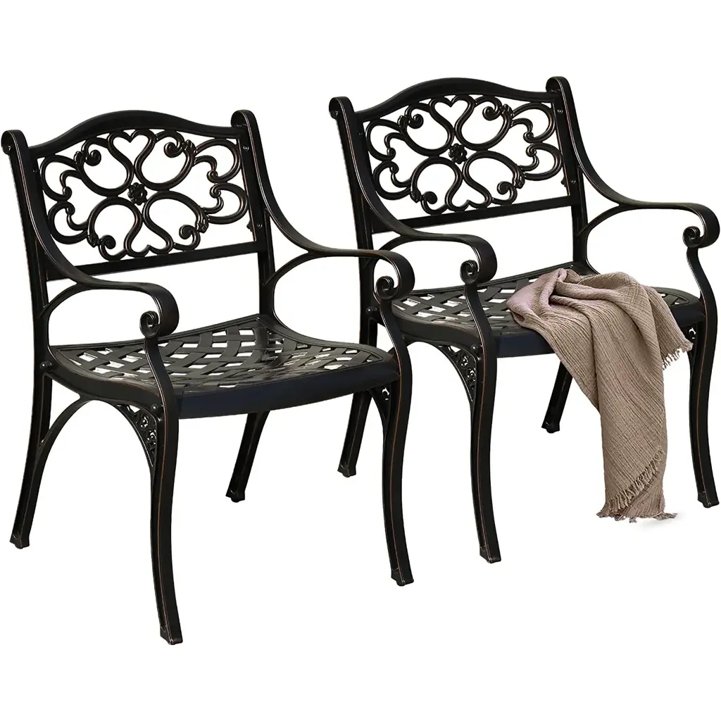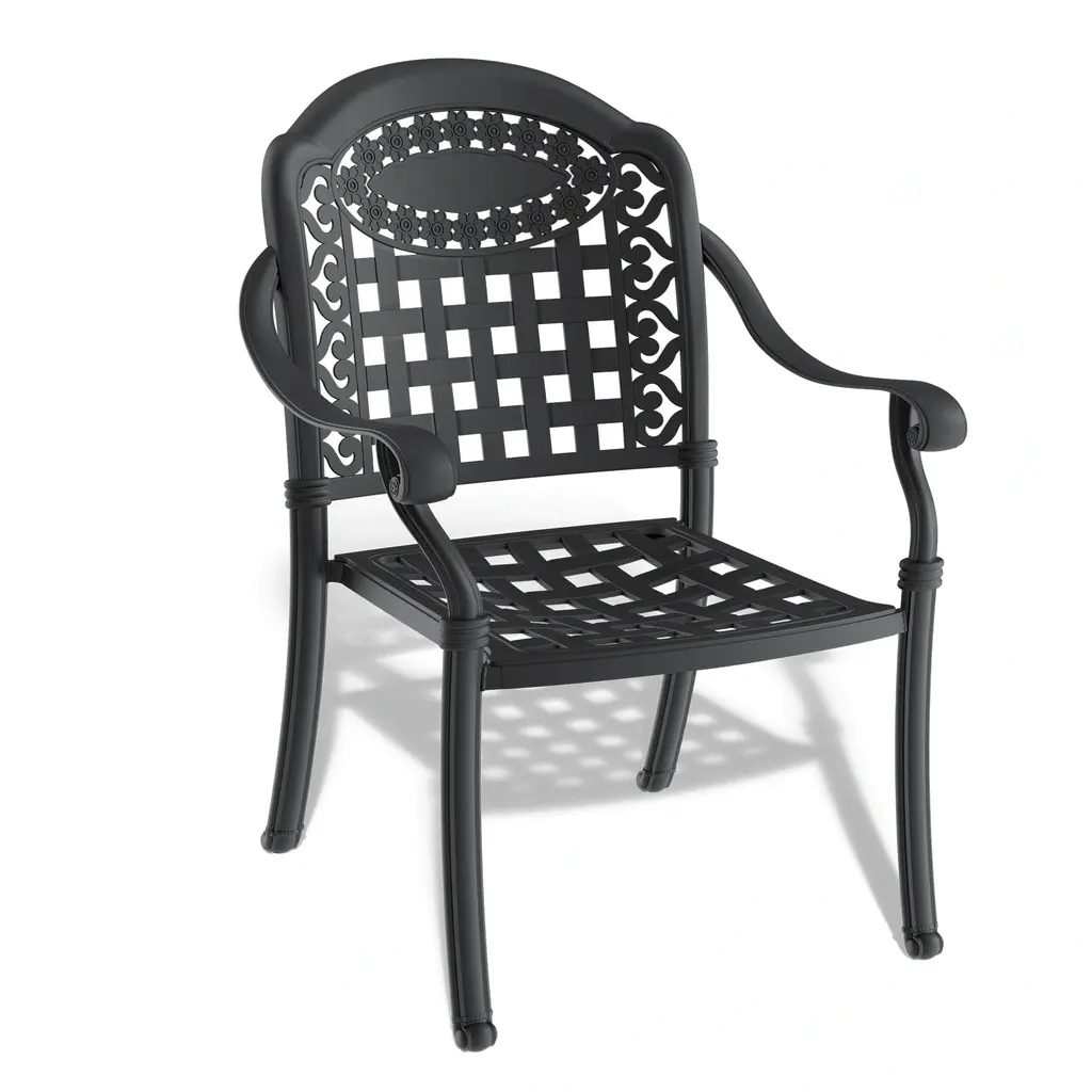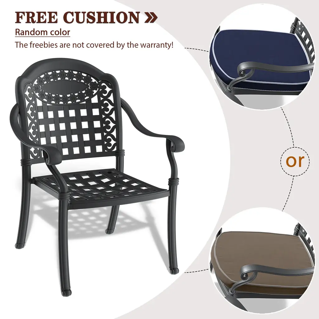 Patio Cast Aluminum Dining Chairs With Random Color Cushions, Set Of 4 - Black