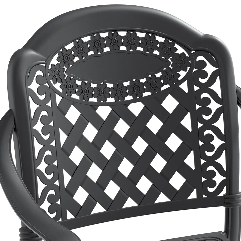 Patio Cast Aluminum Dining Chairs With Random Color Cushions, Set Of 4 - Black