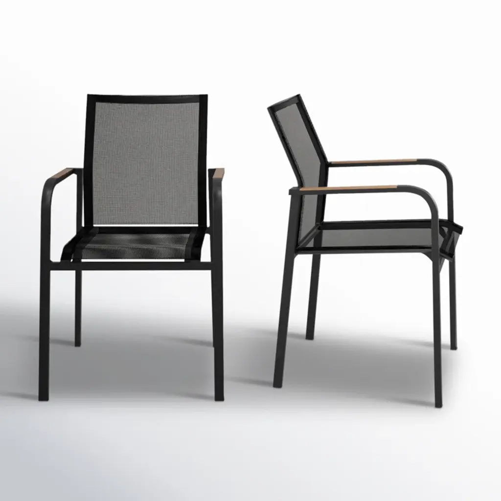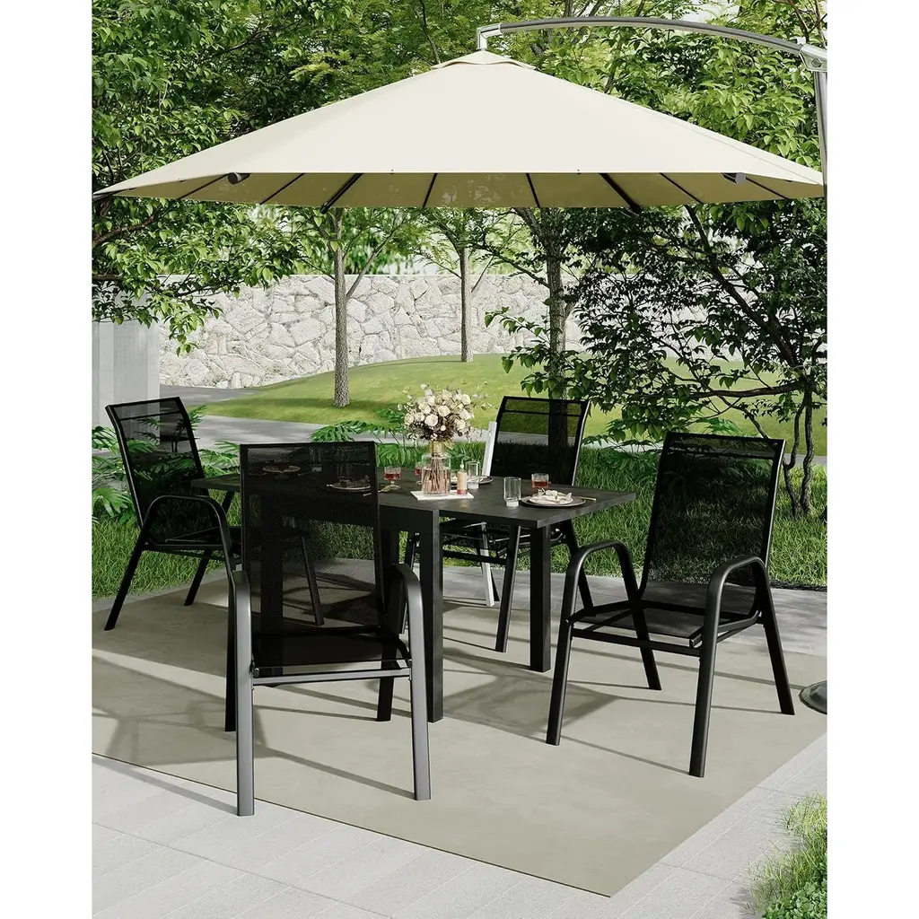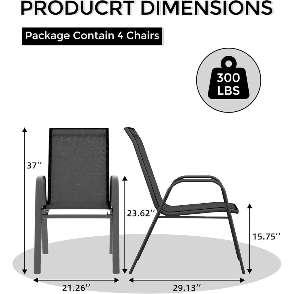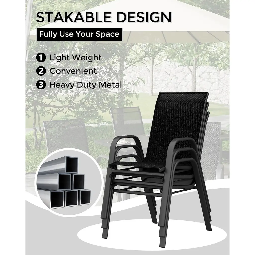 Patio Stackable Chairs Set Of 4, Outdoor Dining Chairs With Textilene Fabric - Black