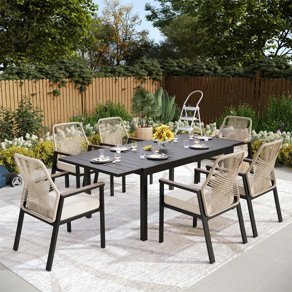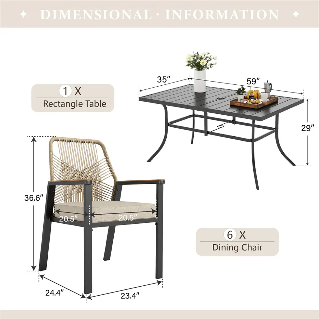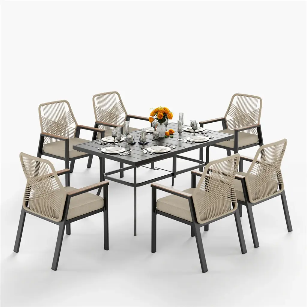Phi Villa 7-Piece Outdoor Patio Dining Set With Handcrafted Rattan Rope Chairs
