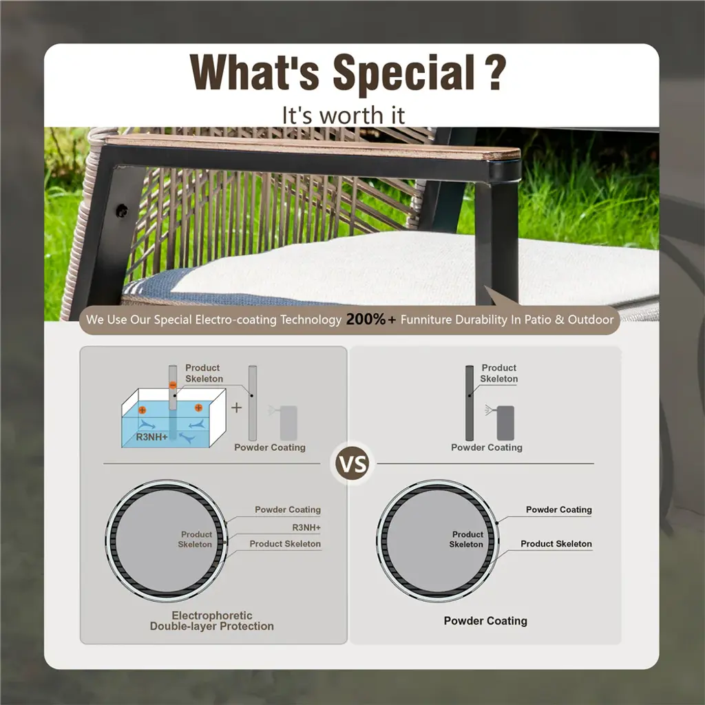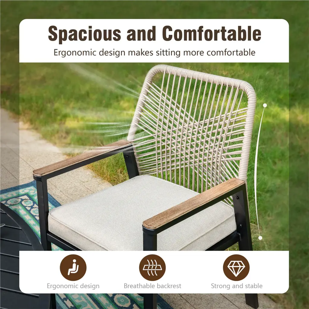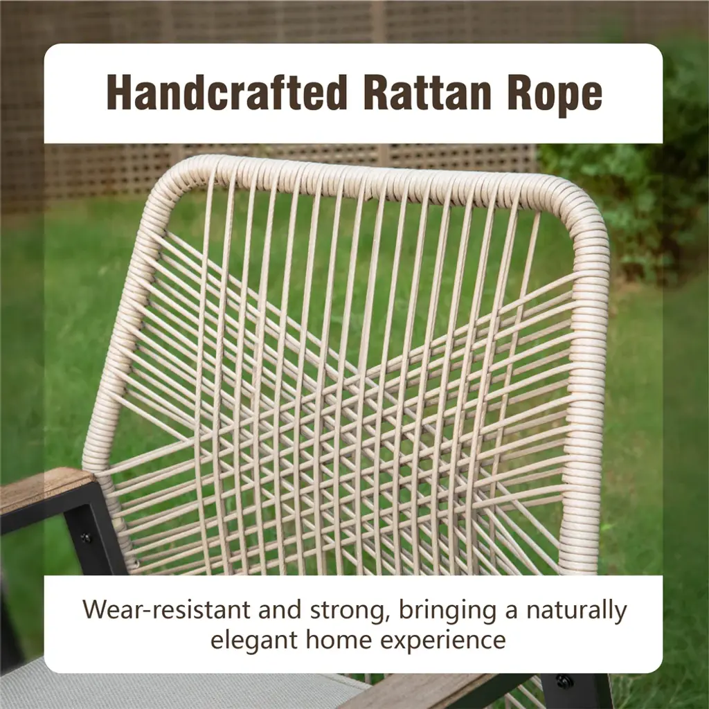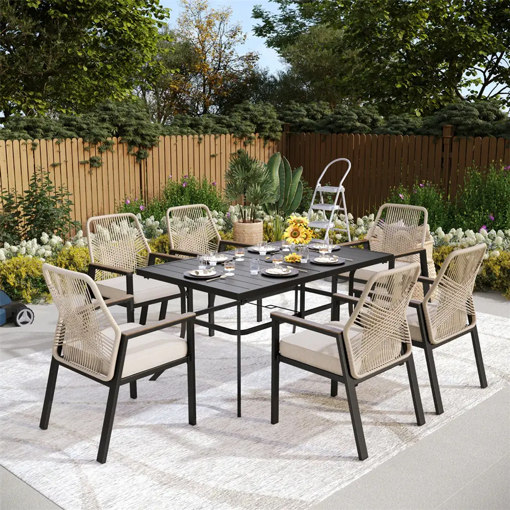 Phi Villa 7-Piece Outdoor Patio Dining Set With Handcrafted Rattan Rope Chairs