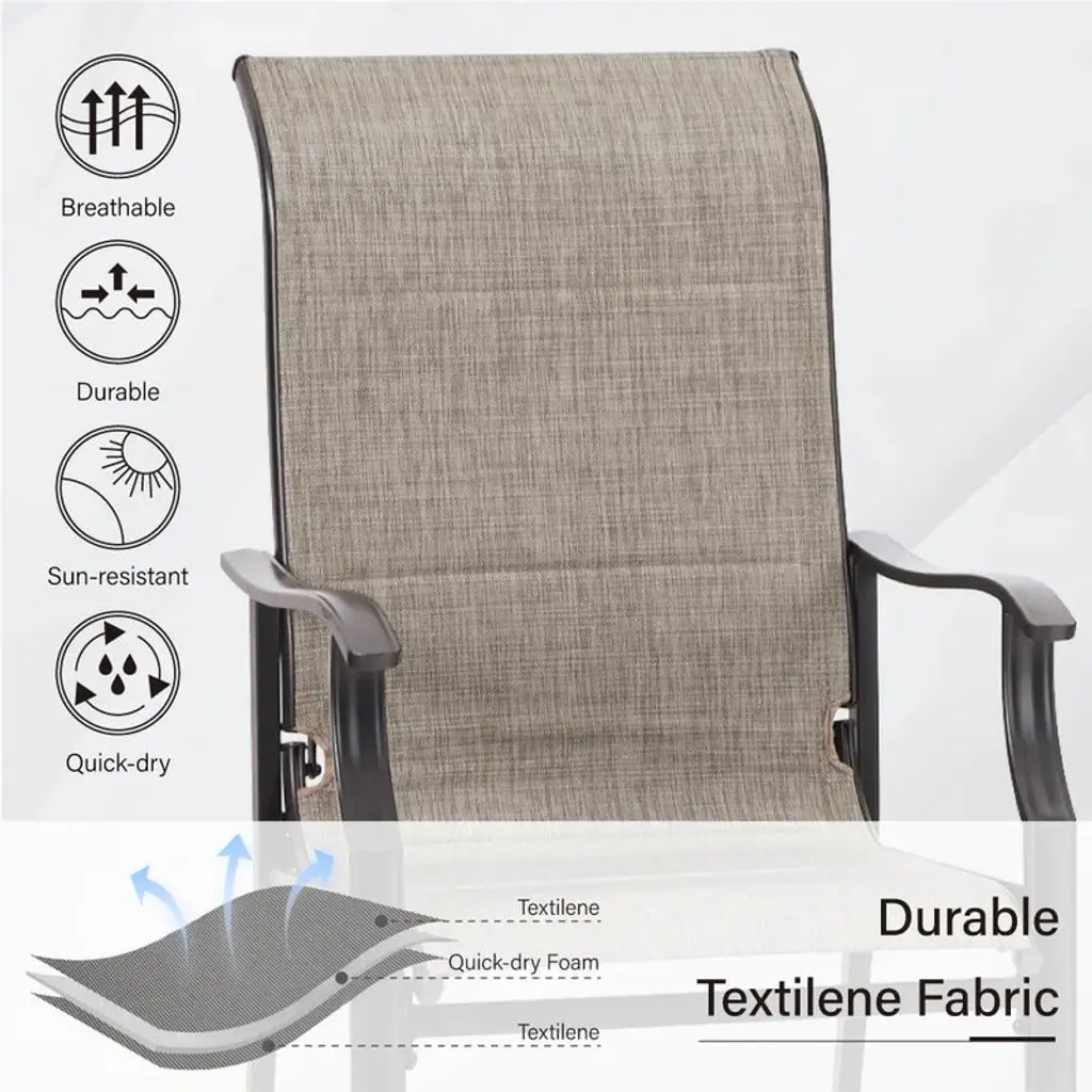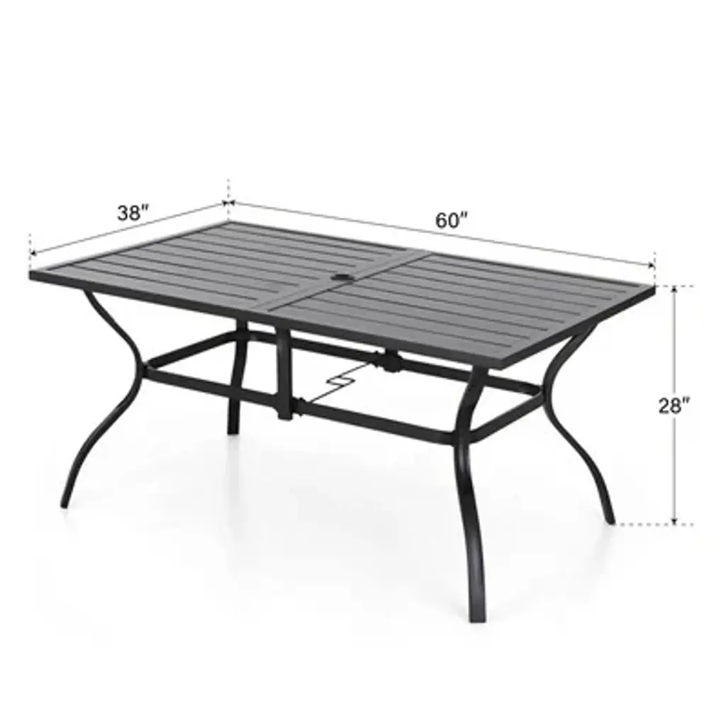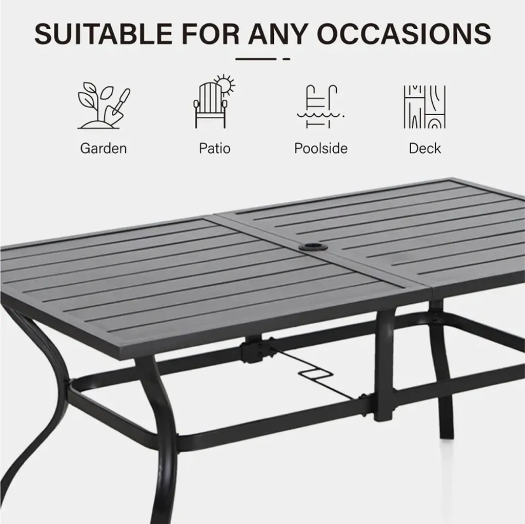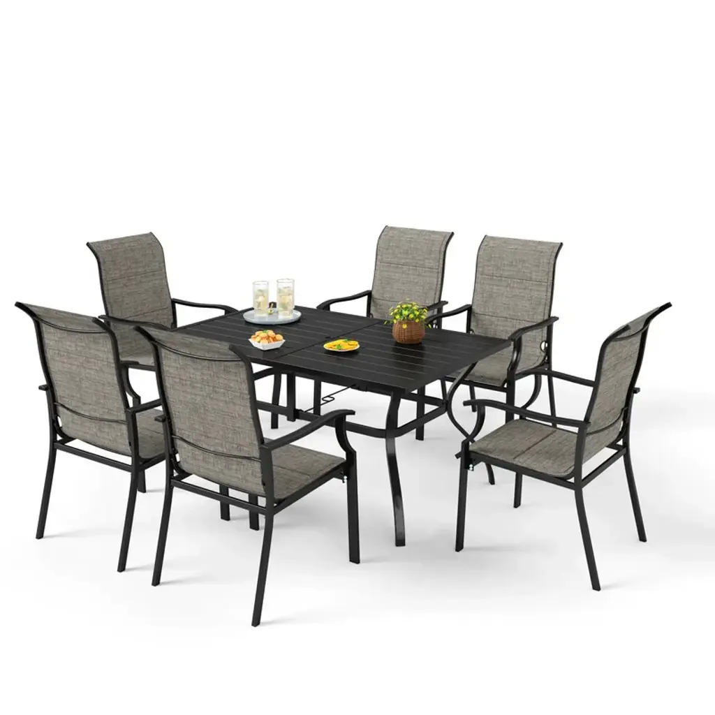 Phi Villa 7-Piece Rectangle Steel Table & 6 Textilene Dining Chairs Outdoor Dining Set