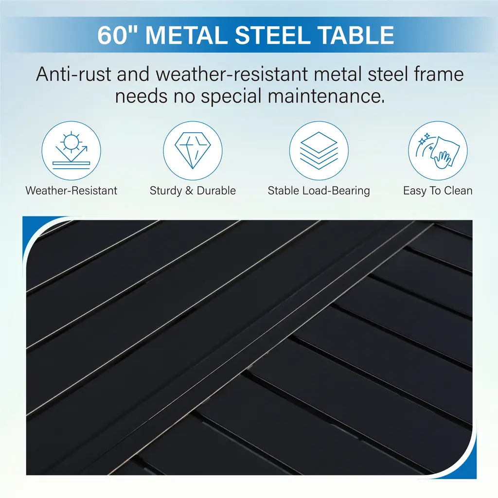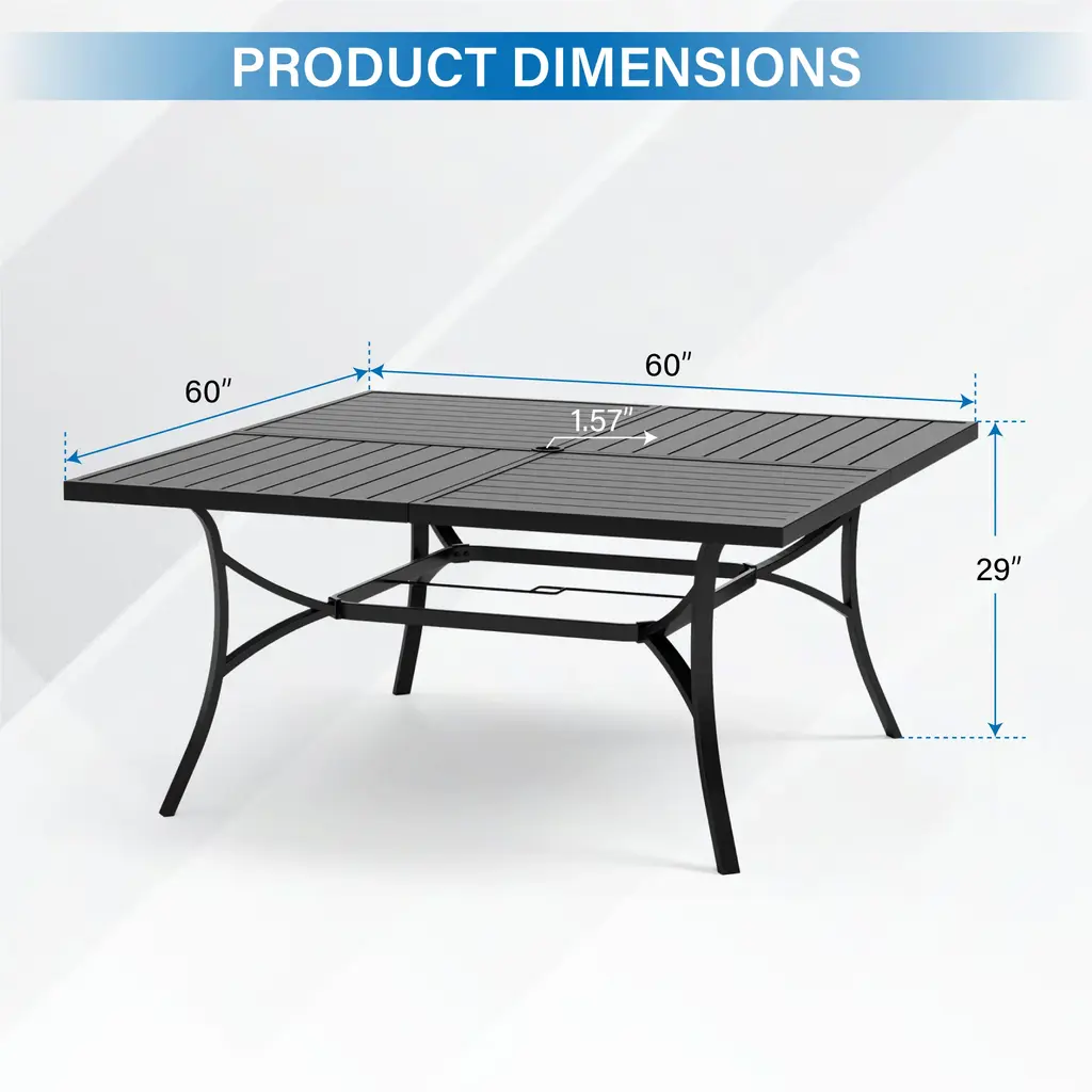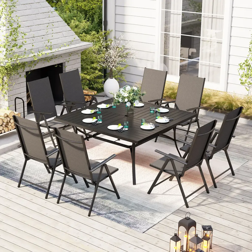 Phi Villa 9-Piece Patio Dining Sets Large Square Table & Textilene Foldable Chair