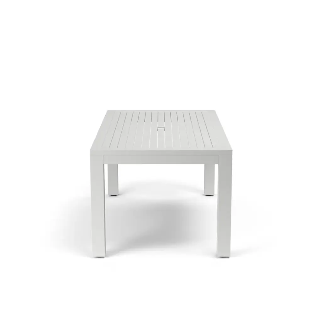 A modern-day solution to simple outdoor entertaining, Poinsettia offers low maintenance with sling seating and enduring powder-coated aluminum. The Poinsettia dining table is crafted in a scratch-resistant satin white finish, on a powder-coated aluminum frame and features a slatted tabletop.