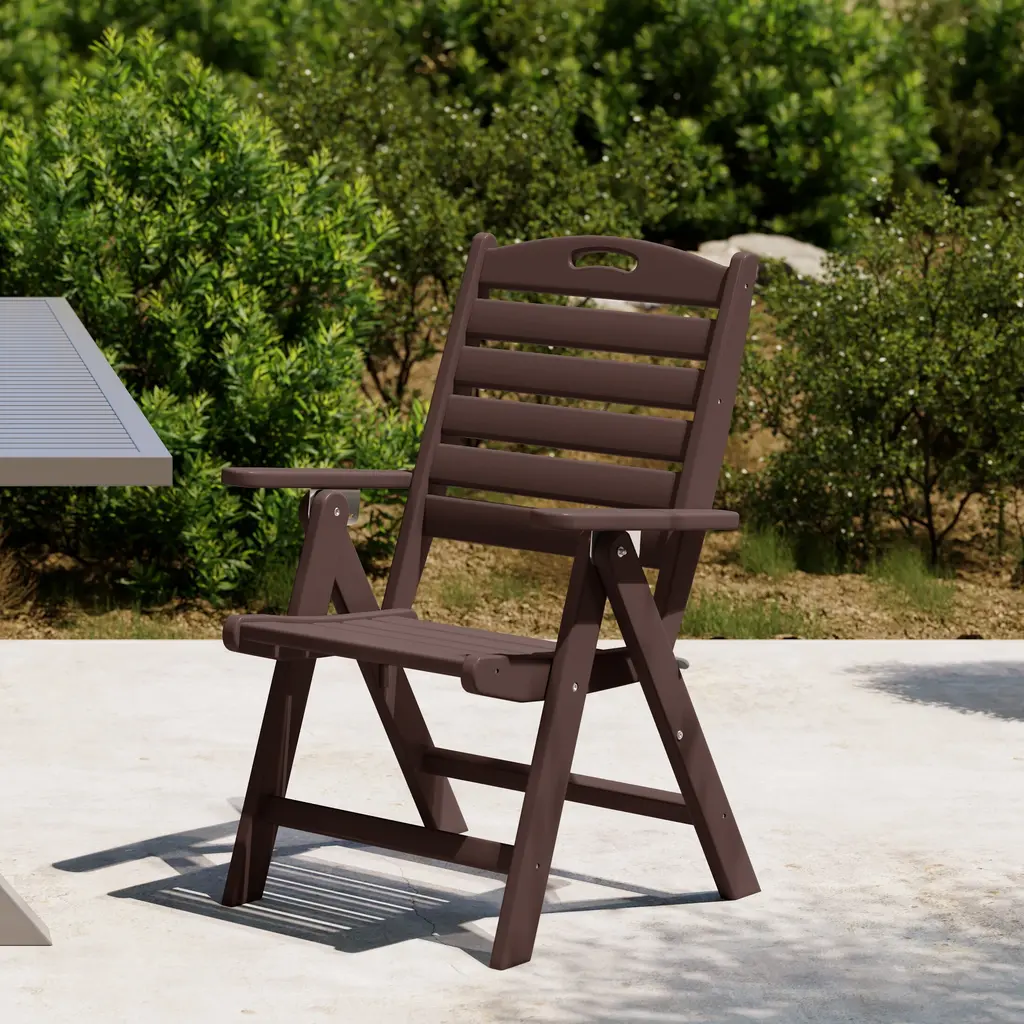 Polytrends Laguna Foldable Highback Patio Dining Chair With Adjustable Recline Feature - Dark Brown