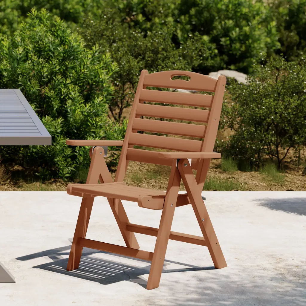Polytrends Laguna Foldable Highback Patio Dining Chair With Adjustable Recline Feature - Teak