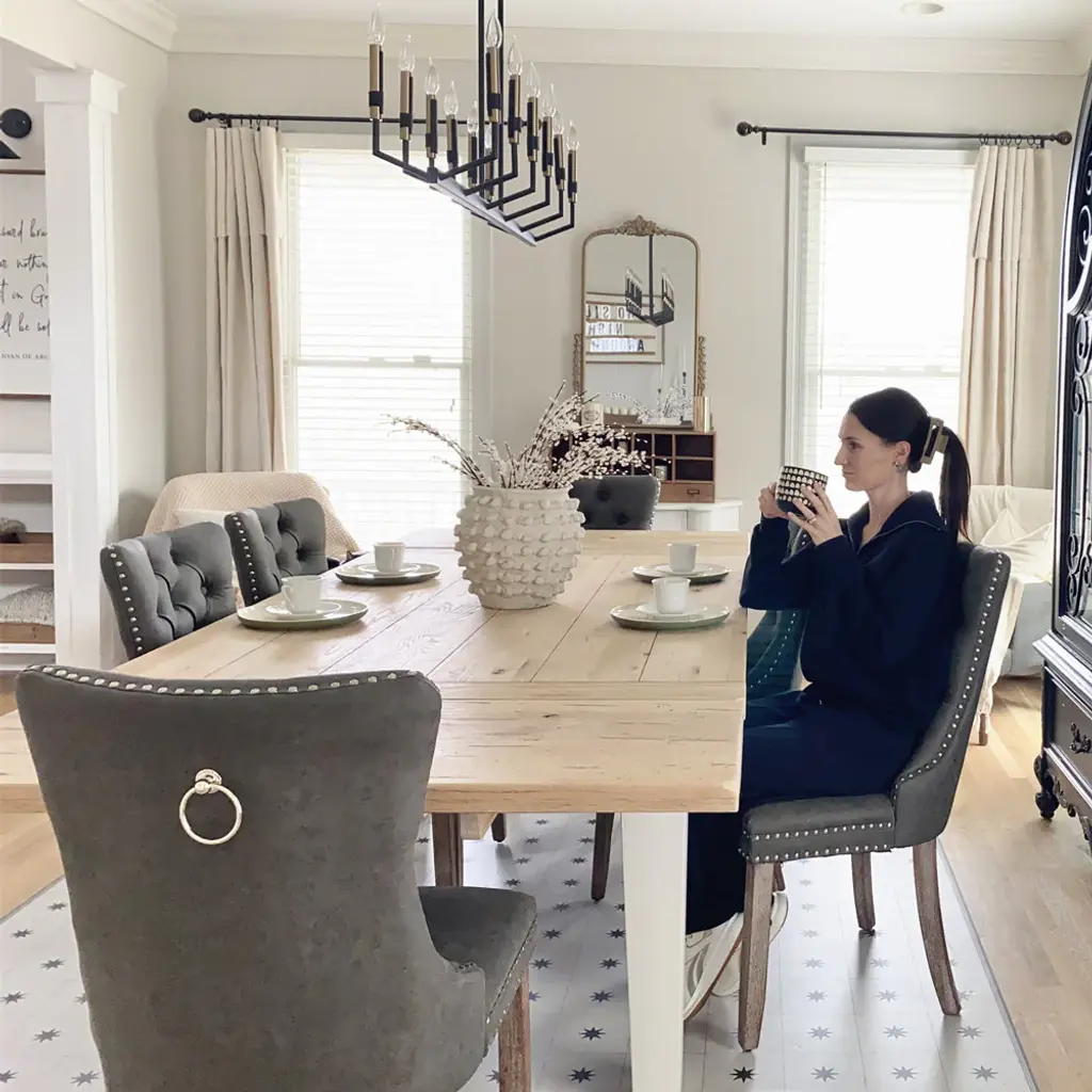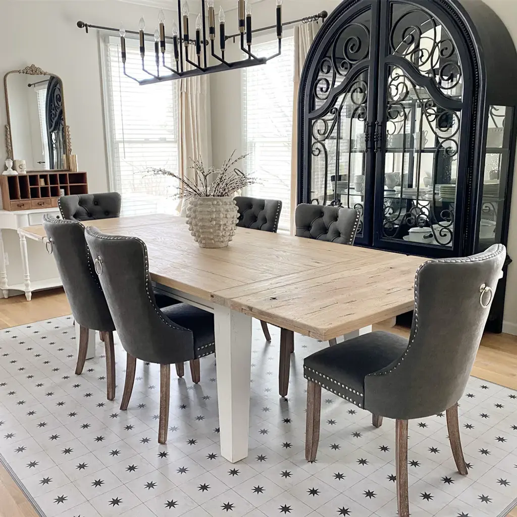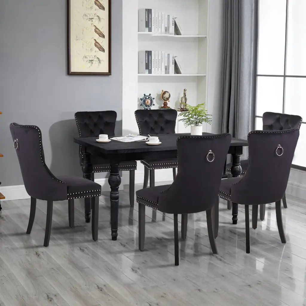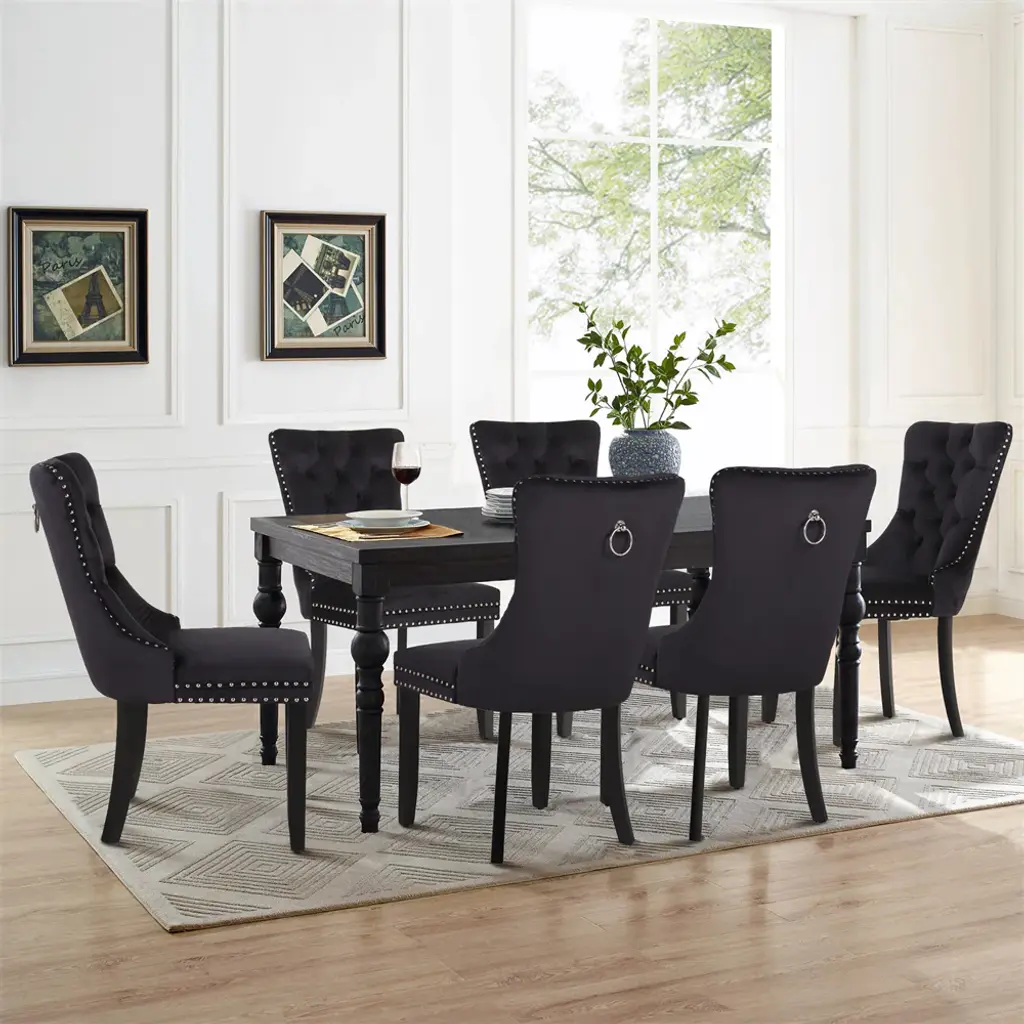 Elevate your dining space with our classic design PU Leather Dining Chairs, embodying simplicity and elegance. The soft cushioned seats are covered in waterproof, durable faux leather with charming nailhead detailing, complemented by sturdy solid wood legs. The pull ring on the back adds convenience, making these chairs a perfect choice for a comfortable and stylish dining experience in your home.