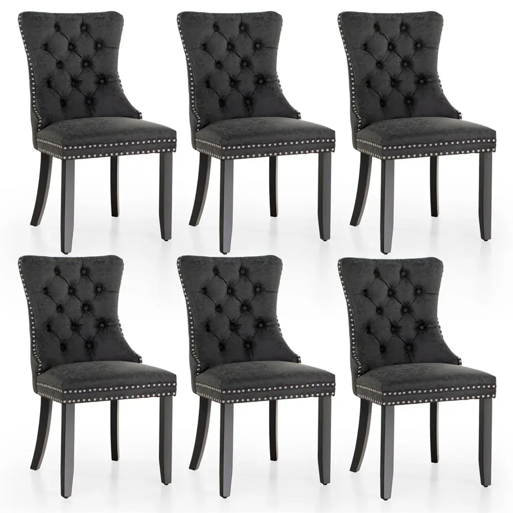 Pu Leather Wing Back Side Dining Room Chairs Set Of 6 -Mfstudio