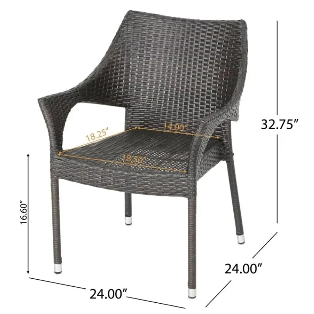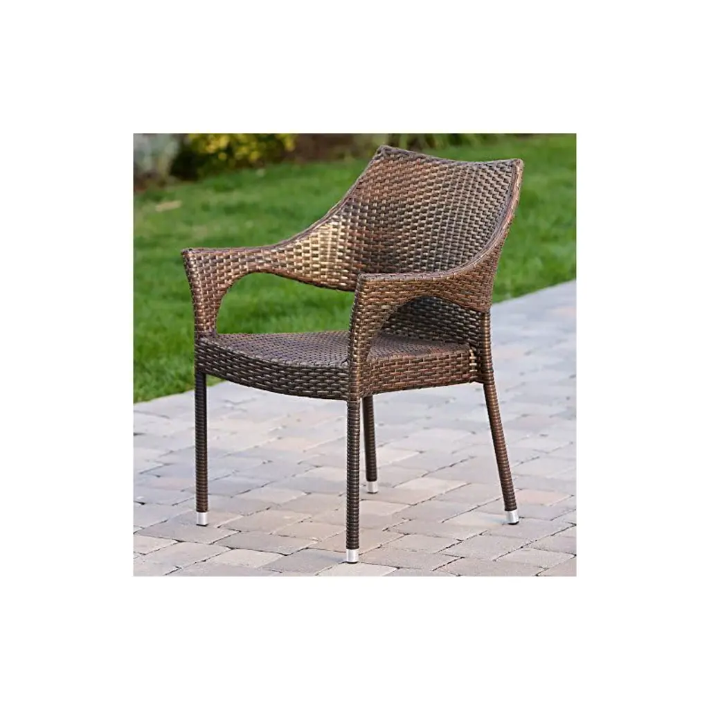 Rbied Wicker Outdoor Stackable Dining Chair Lounge Chair Lawn Chair In Brown Set Of 4