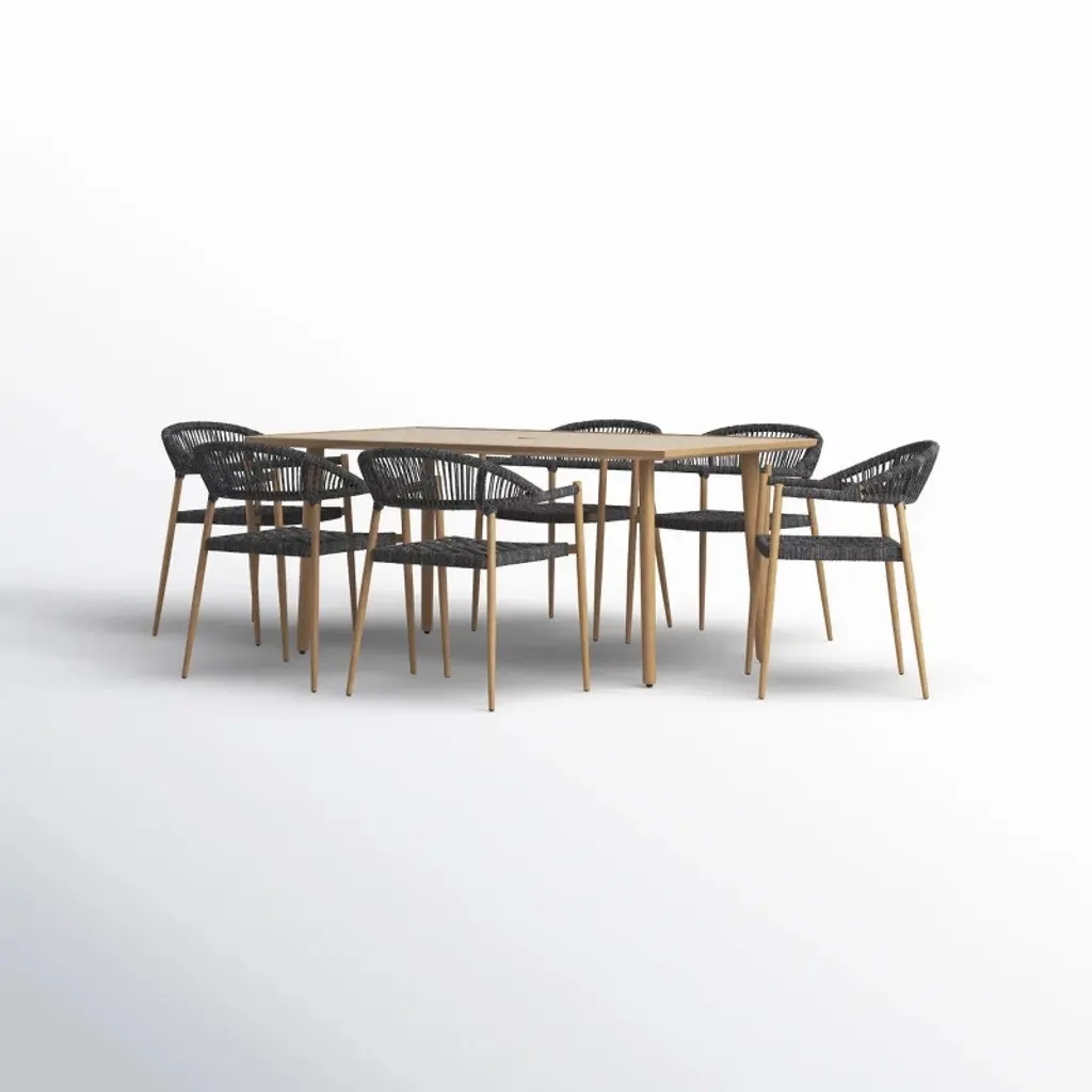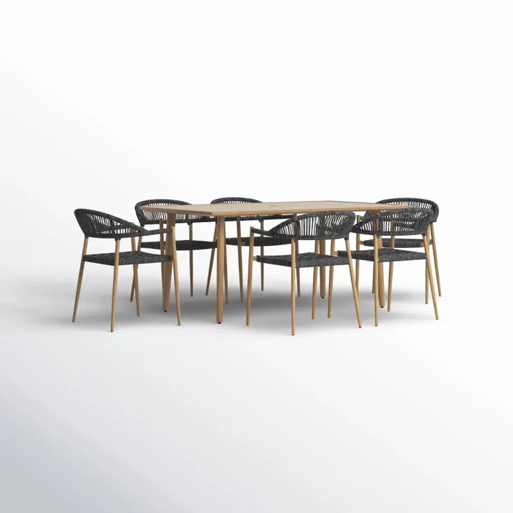 Rectangular Planked Wood Outdoor Dining Set:7-piece Mesh Weave Chair Patio Furniture