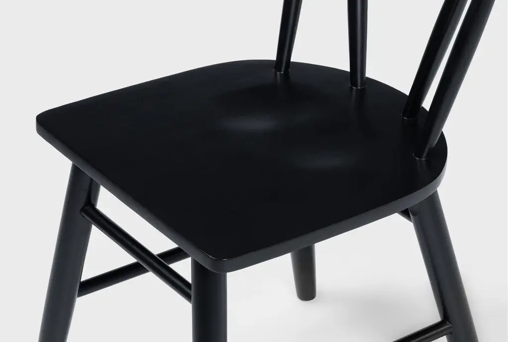 Enhance your dining space with the Runi Black Wood Dining Chair Set Of 4. These modern chairs feature a sleek black finish and are constructed from solid rubberwood, offering both style and durability. Perfect for any dining room, they bring a touch of contemporary charm to your home.