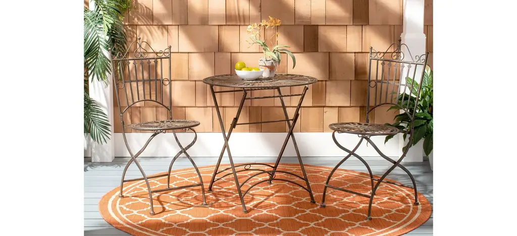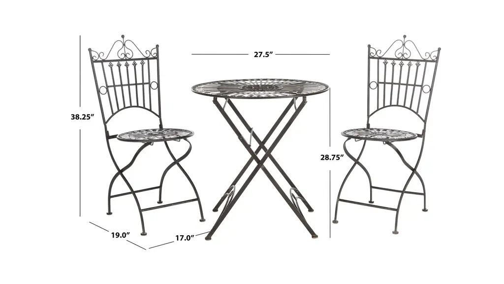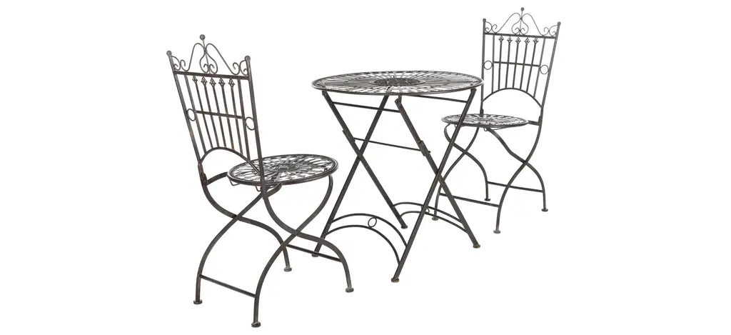 Whether it's afternoon tea or a moonlight soiree, it's easy to dine like royalty with this outdoor Ryder 3-pc. Outdoor Dining Set. Inspired by master artisan ironwork, Ryder's table and two matching chairs are given an elegant Victorian touch with scrolls and flourishes in a rustic finish.