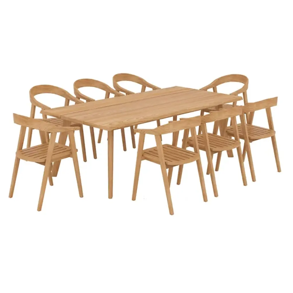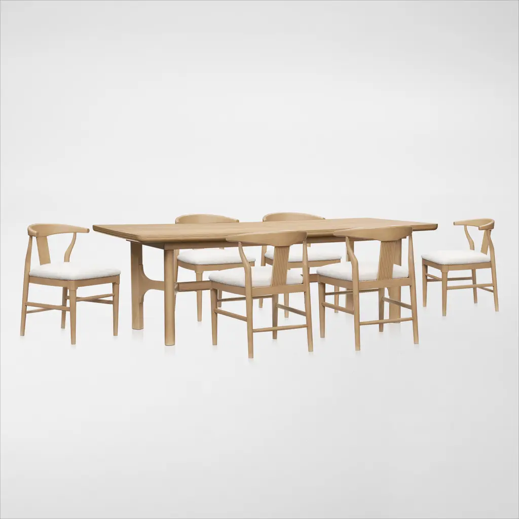 Santa Monica Rectangle Dining Table With 6 Wishbone-Back Dining Chairs - Natural