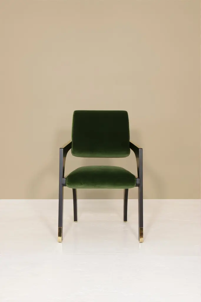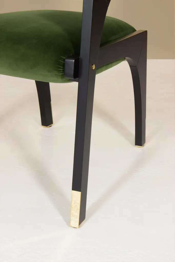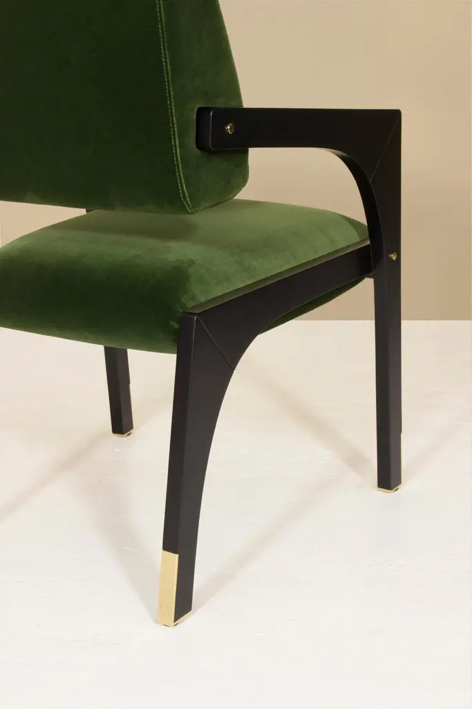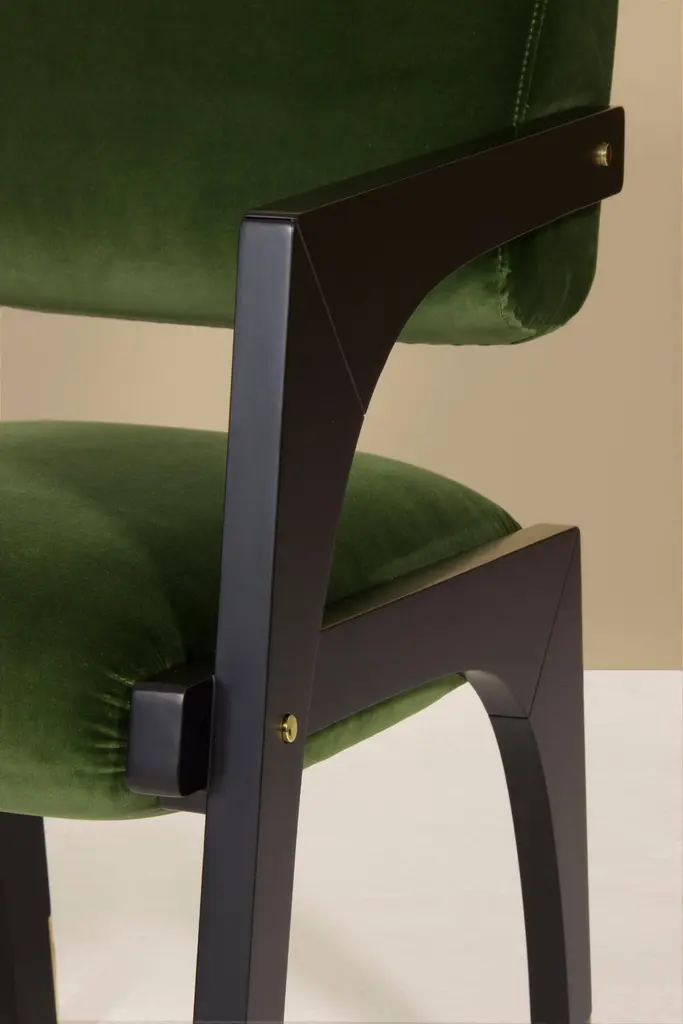 Best Chair Design at the International Design & Architecture Awards 2021Honorable Mention at the European Product Design Awards 2021The Arches dining chair is designed in the likeness of the architectural scale that suggests a crossing through the structures of a utopian city, organized by the principles of symmetry and ideal forms.The chair profile shows details that seem to be drawn from large architectural structures. The raised backrest stands out from the remaining set that only crosses in a single point, whereas a folded brass bar arises as a support element that prevents the contact of the arches with the floor. Arches is a sculptural chair that catches the eye of those who seek for unique design.Product detailsFrame: wood structure lacquered in matt varnish. Feet: polished brass.Upholstery: InsidherLand Cotton Velvet 0790Product optionsFrame: lacquered in any Ral Classic color.Upholstery: InsidherLand fabrics or client fabric.COM: 1,5m 58,99in. (Standard width 140cm 55in.)Weight 11Kg 24,3 lbsMade to order. Custom sizes and other finishes are available under request.Designed by Joana Santos Barbosa, 2019. Handmade in Portugal.