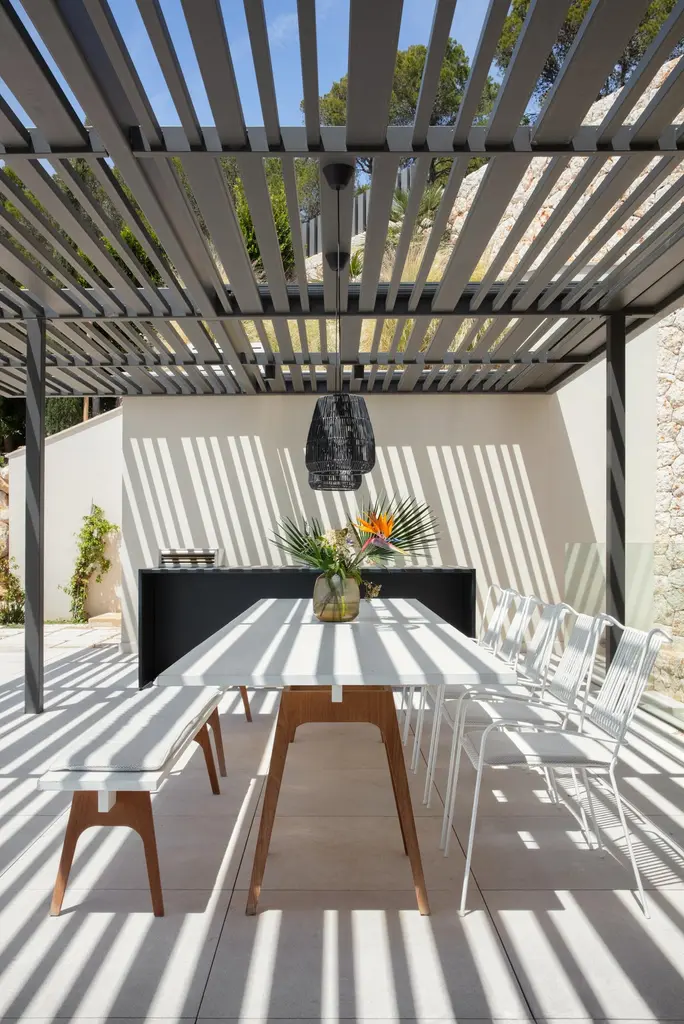 Set of 3 Marina White Dining Table and Benches by Cools CollectionHandmade.Dimensions: Dining Table: D 100 x W 340 x H 75 cm.Bench: D 35 x W 160 x H 45 cm.Materials: Legs: Teak/Dibond. Tabletop: Spruce with corrosion resistant boatpaint.Table top & bench top available in black or white. Also available with cushions for the bench. Please contact us.An extra large dining table for memorable times with your loved ones. Characterized by its elegant simplicity and powerful presence, the Marina table is made of high-quality wood. The white or black table top is set upon two teak wood blocks, with an intelligent underconstruction that doesn't require screws and stabilizes the table. It is made for indoor/outdoor use. A special boat lacquer protects the wood from the weather. You can find a cozy seat on the optional benches, which can be combined with the Capri chairs or other beautiful chairs of choice.COOLS Collection was launched in 2020 by mother-and-daughter duo Stefania Andorlini and Maria Francesca Staehle, who together decided to start a new adventure and build a brand capturing their joint aesthetic expression and spirit. A joint vision of casual elegance and timeless simplicity characterizes their brand and collection.COOLS are Contemporary Object Of Love, making you want to have them around for a lifetime.We work together with local and specialised artisans across Europe. Our products are made in small batches, from high quality and sustainable materials. Either in form of recycled or long-lasting and recyclable materials, such as steel and aluminum, both endlessly reclaimable and reshapable. We believe in lasting, meaningful design. Design that is self-evident and essential, transcending context and time. We love design that is simultaneously casual, intuitive, humorous and chic. We believe in treasuring what we love. Our designs are: Intentionally casual.Likeable and resonating, with a touch humour.Distinctive, smart and surprising.Consciously balancing function and aesthetics.Timeless, contemporary, to treasure and love for years to come.