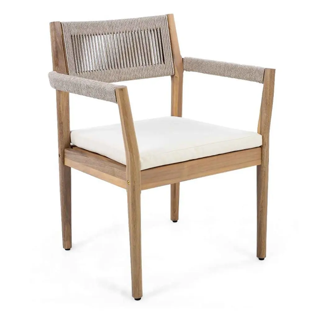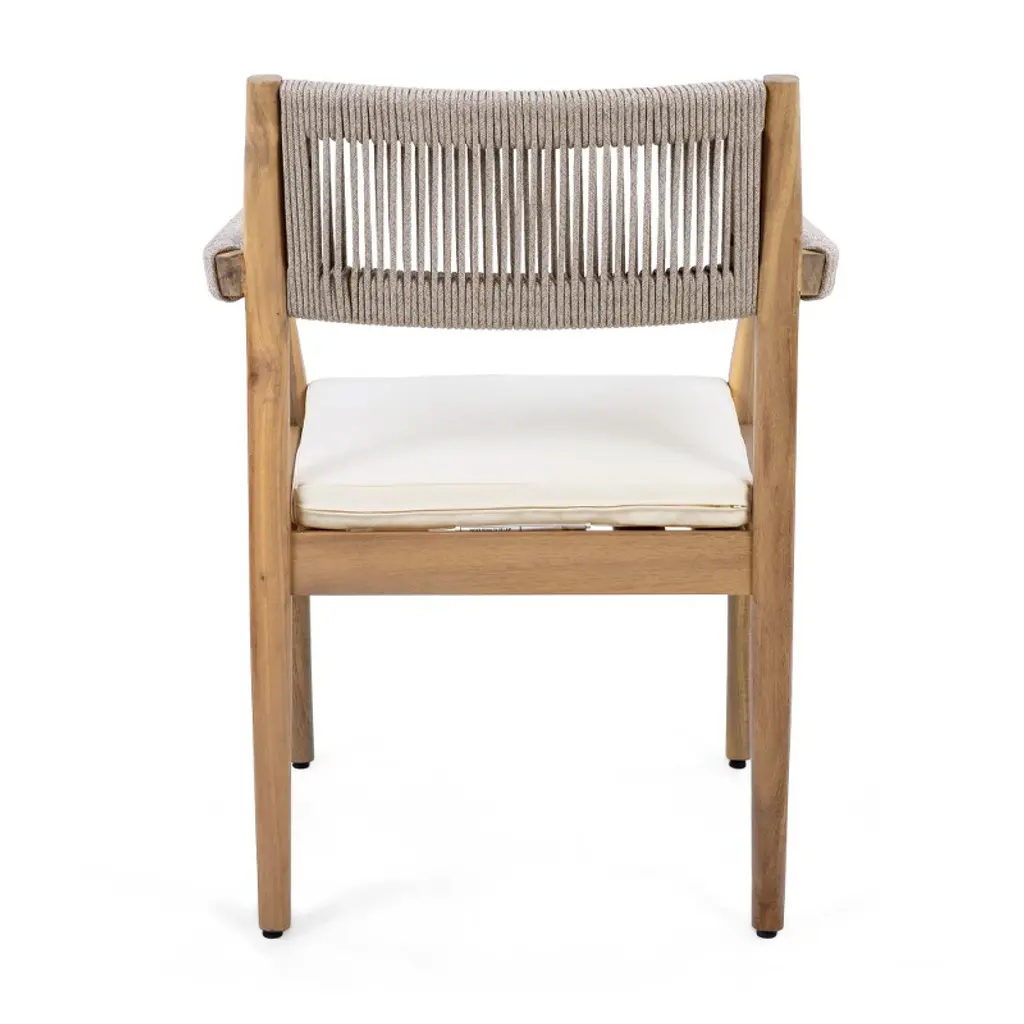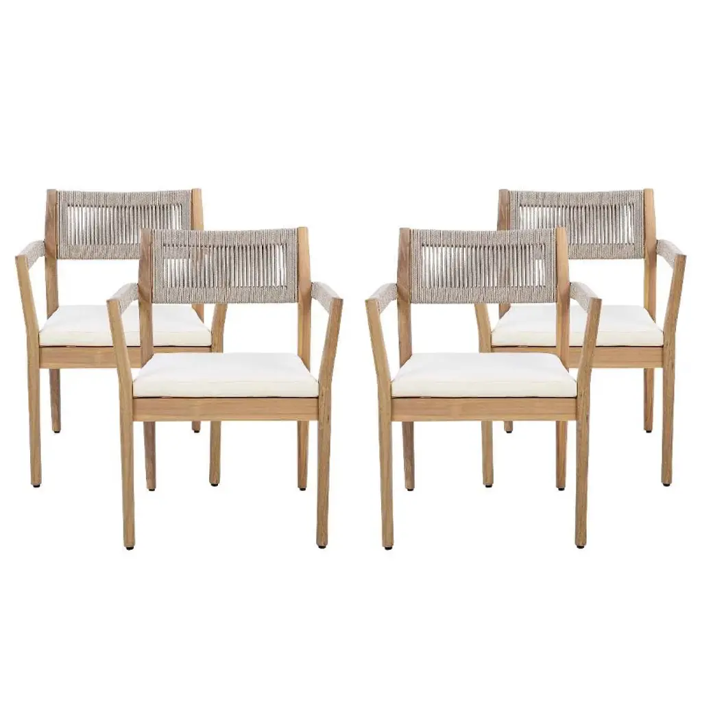 Set Of 4 Acacia Wood Outdoor Dining Chair With Cream Cushions,patio Dining Chair Teak Look With Beige Rope,outdoor Dining Chair Set For Garden-koiai