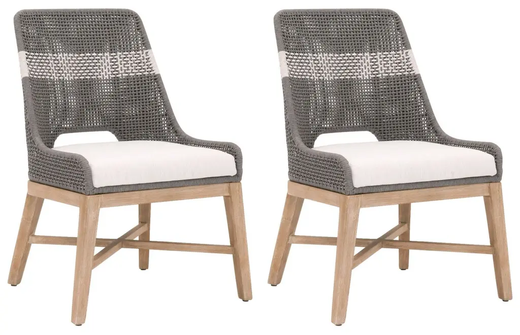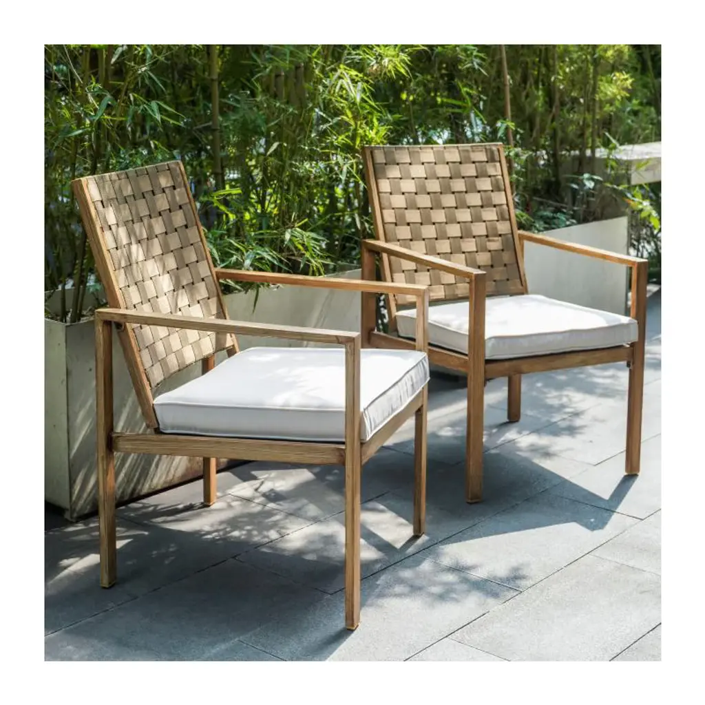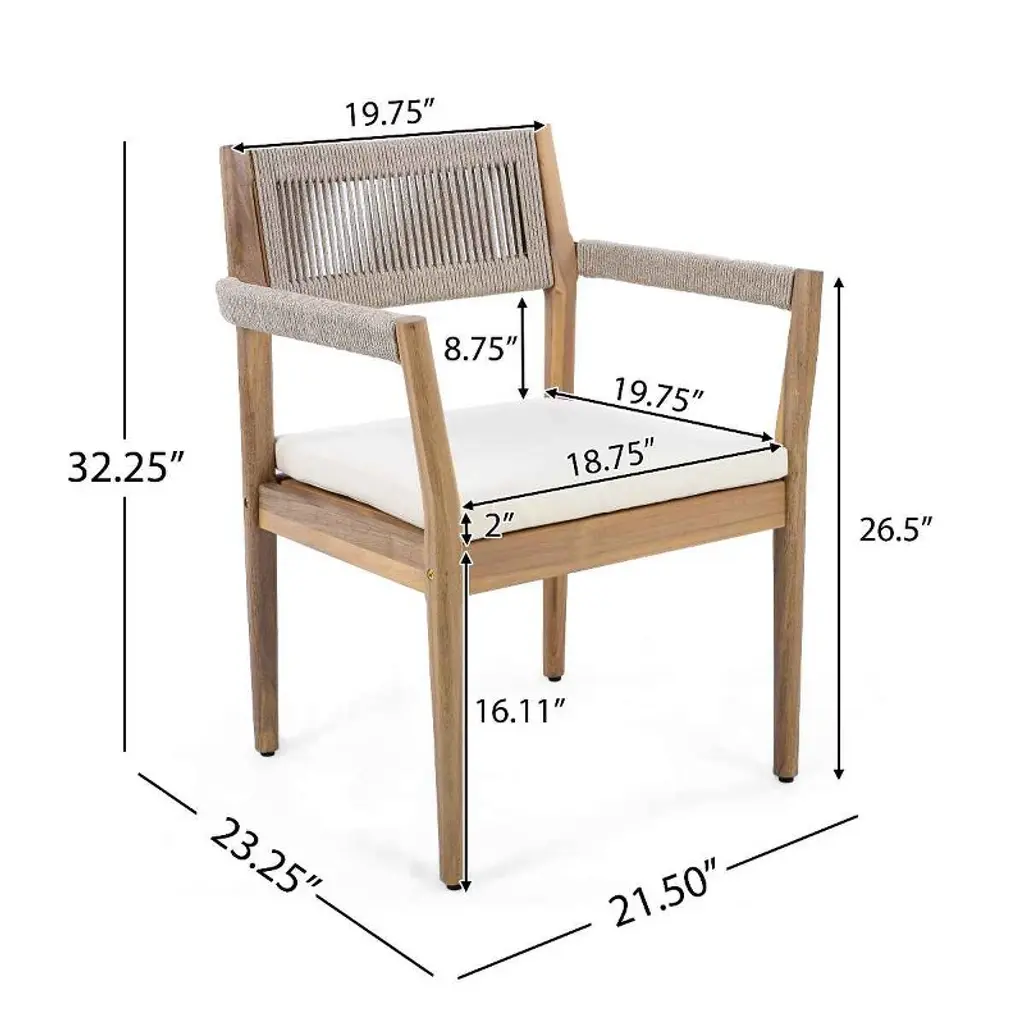 Refresh your outdoor dining experience with this Acacia Wood Outdoor Dining Chairs Set of 4, blending contemporary elegance with all-weather performance. Each chair is constructed from premium acacia wood in a sophisticated teak finish, offering natural beauty and long-lasting durability for year-round enjoyment. The handwoven beige rope seat and backrest deliver a stylish, breathable touch that sets each piece apart as a standout accent for your patio, garden, or deck. Designed for lasting comfort, these modern patio dining armchairs provide an ergonomic, slightly reclined back and gently curved wooden armrests for optimal support. Every seat is topped with a plush, 2-inch thick cushion, covered in quick-drying, UV-resistant fabric to resist fading and moisture. The lightweight frame allows you to easily rearrange your seating, while the robust construction supports up to 400 lbs per chair, making this set as practical as it is beautiful. Whether you’re gathering for al fresco meals, relaxing on the balcony, or creating a conversation nook by the pool, these weather resistant outdoor accent chairs are crafted to suit any setting. The combination of teak finish wood and beige rope detailing complements modern, coastal, and rustic décor alike, infusing your space with warmth and sophistication. Maintenance is simple—quick-drying rope and easy-clean cushions ensure your outdoor set remains inviting and fresh through every season.