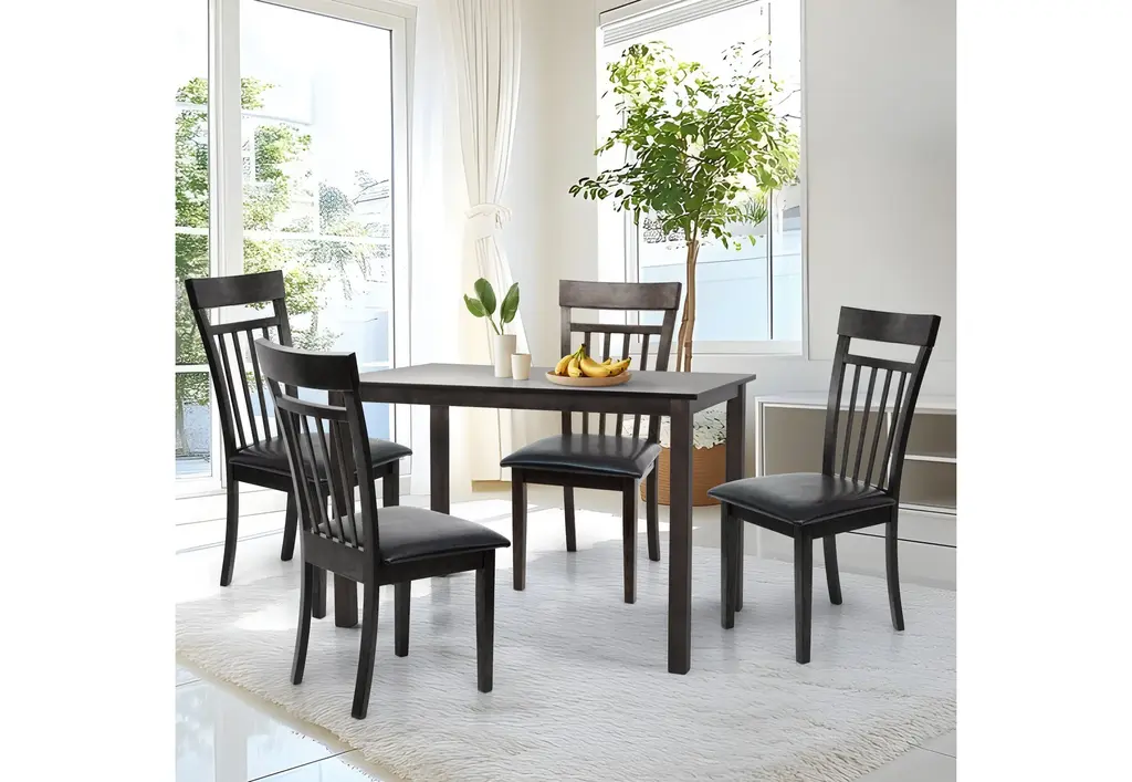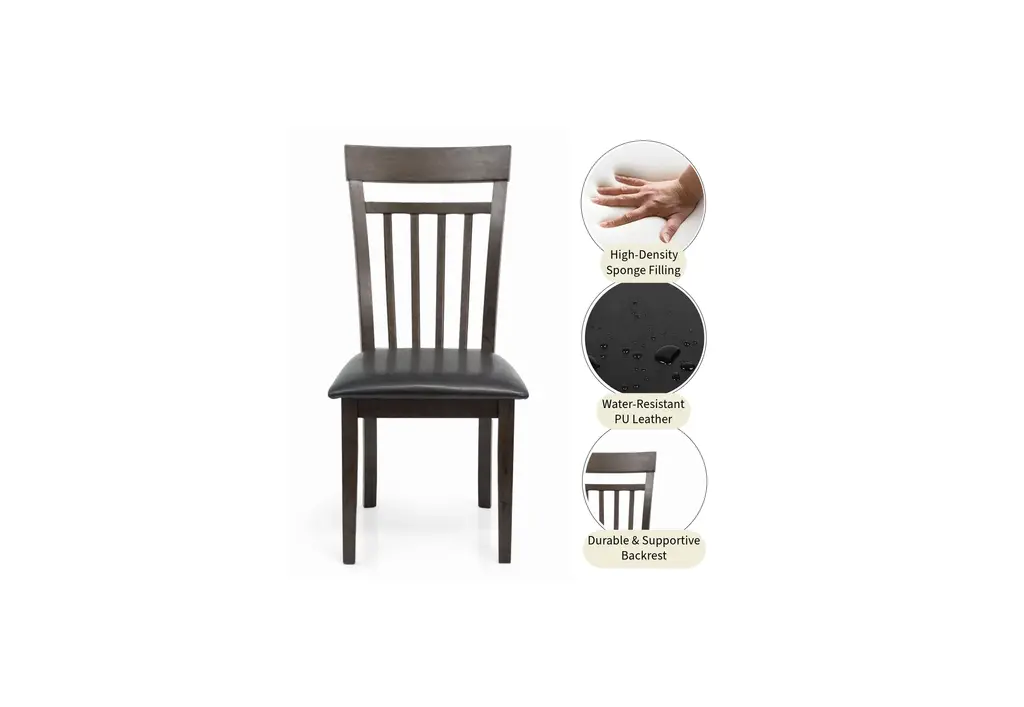 Set Of 4 Classic Style Solid Wood Warm Dining Chairs, Espresso/pu Leather