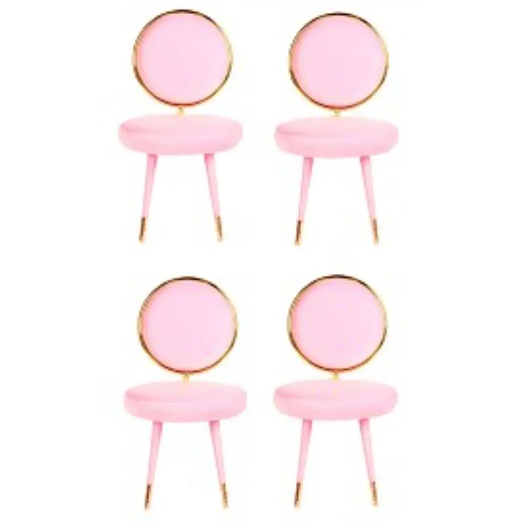 Set of 4 Graceful dining chairs, Royal StrangerDimensions: 95 x 54 x 54 cmMaterials: Blossom pink velvet upholstery with stainless steel coated in brass frame elevated by lacquered wood legs and brass feet covers.Available in: Mint green, light pink, royal green, royal redA round and sweet shaped chair involved in a graceful glamour of gold contour. The perfect addiction for an elegant and sweet Ambience.Royal Stranger is an exclusive furniture brand determined to bring you the best unique pieces of art and design.Fusing design, art and the best craftsmanship, they strive to deliver the best state of the handmade art furniture. The design team works every day to create meaningful products that represent values such as passion, function, aesthetics and know-how. Values that are meant to represent Royal Stranger’s DNA. This dedication is present at all stages of production and the combination of craftsmanship and innovative design contributes toour final purpose: to produce certified high-quality products, made with passion and expertise and using royal materials such as gold leaf, rich woods and high quality lacquers.It was in 2013, as an architects, that Sofia Santos & Rui Santos started to push the boundaries of innovation in several retail design concepts for some of the best stores in Portugal. This will has always been present in their work, and that’s how the brand was born.