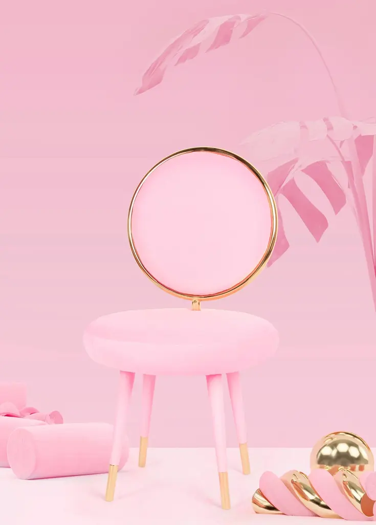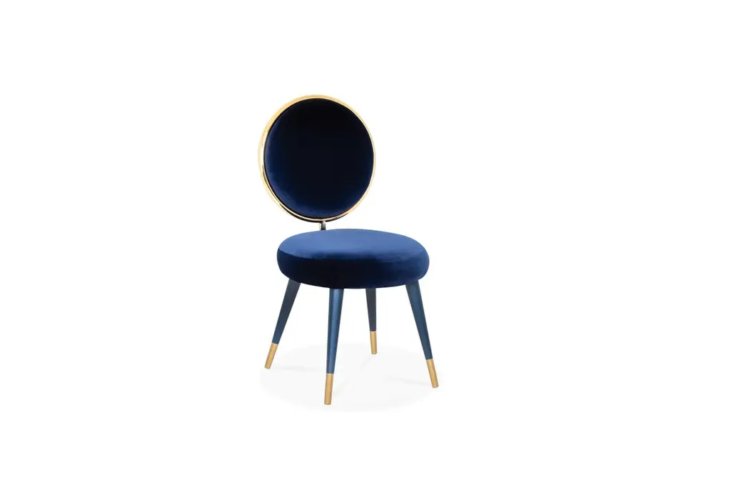 Set of 4 graceful dining chairs, Royal StrangerDimensions: 95 x 54 x 54 cmMaterials: Blossom pink velvet upholstery with stainless steel coated in brass frame elevated by lacquered wood legs and brass feet covers.Available in: Mint green, light pink, royal green, royal red, navy blue.A round and sweet shaped chair involved in a graceful glamour of gold contour. The perfect addiction for an elegant and sweet Ambience.Royal Stranger is an exclusive furniture brand determined to bring you the best unique pieces of art and design.Fusing design, art and the best craftsmanship, they strive to deliver the best state of the handmade art furniture. The design team works every day to create meaningful products that represent values such as passion, function, aesthetics and know-how. Values that are meant to represent Royal Stranger’s DNA. This dedication is present at all stages of production and the combination of craftsmanship and innovative design contributes toour final purpose: to produce certified high-quality products, made with passion and expertise and using royal materials such as gold leaf, rich woods and high quality lacquers.It was in 2013, as an architects, that Sofia Santos & Rui Santos started to push the boundaries of innovation in several retail design concepts for some of the best stores in Portugal. This will has always been present in their work, and that’s how the brand was born.