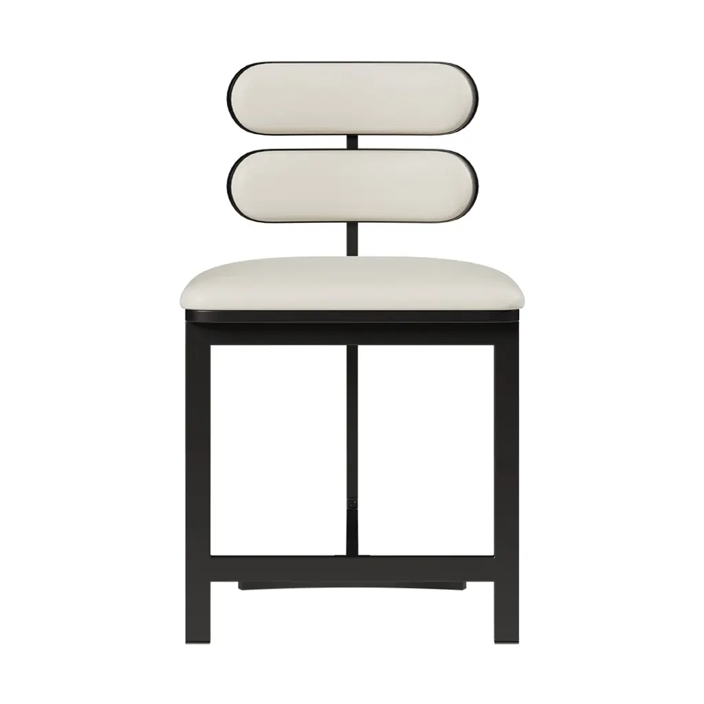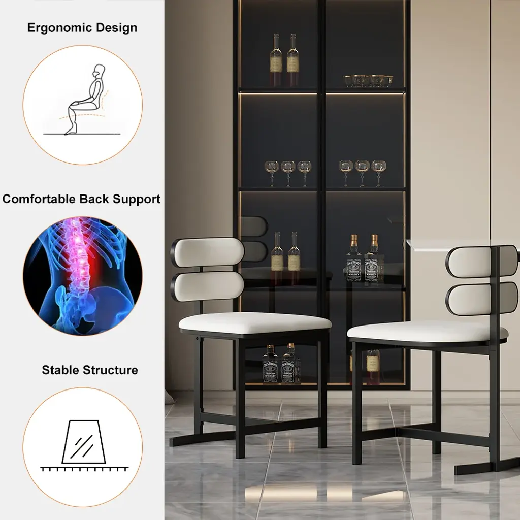 Refresh your living space in a new rhythm with this modern white dining chairs. White upholstery and black frame make the perfect match to make the ultimate statement piece for your room. Upholstered with faux leather, this chair is much easier to maintain than fabric due to its strong, spill-resistant qualities. It features a wide seating area and thickly padded cushions for the ultimate seating comfort. Constructed from durable meal, this chair gives years of service and timeless elegance.