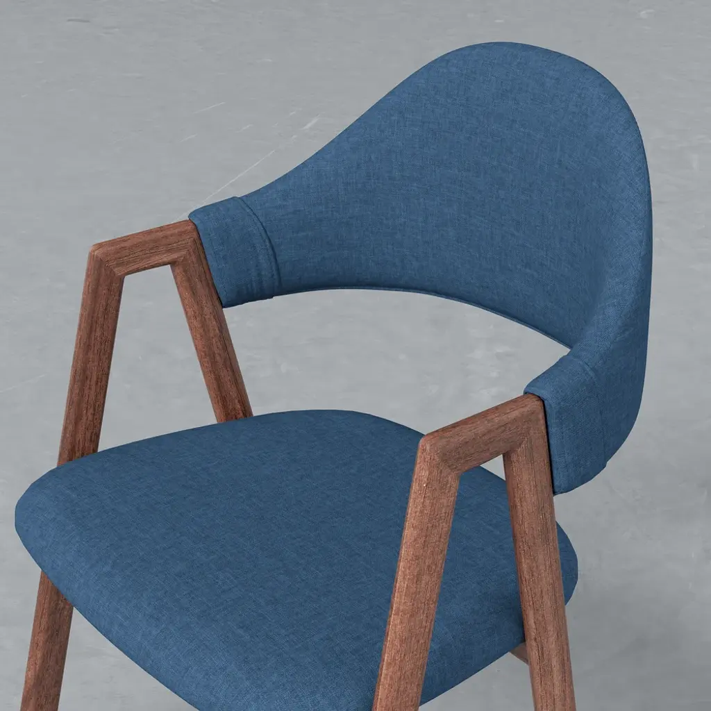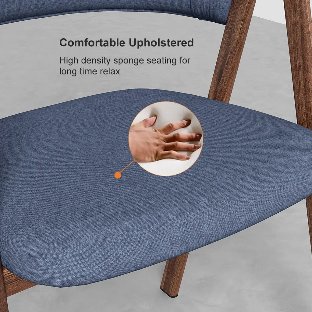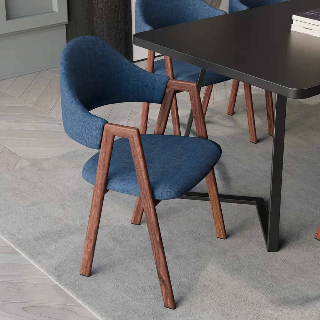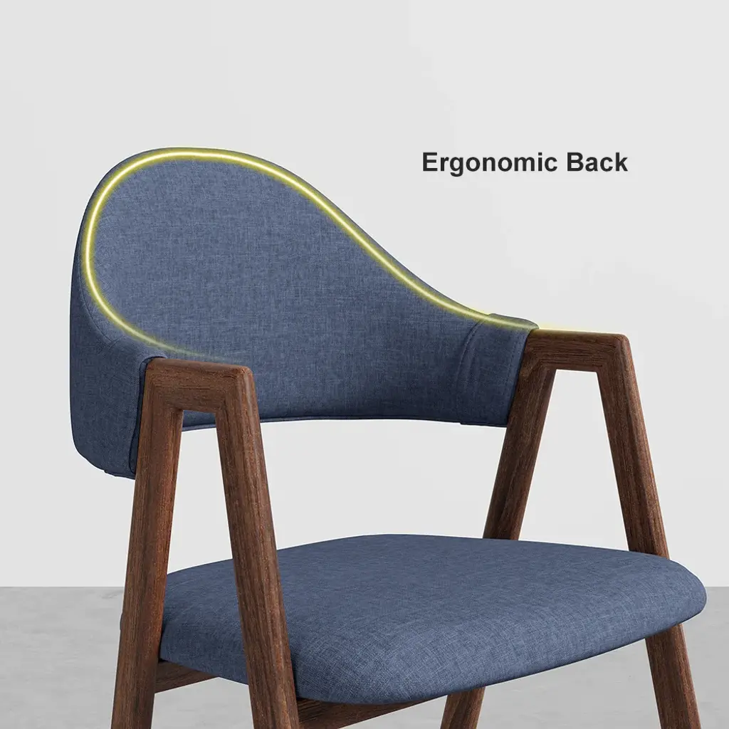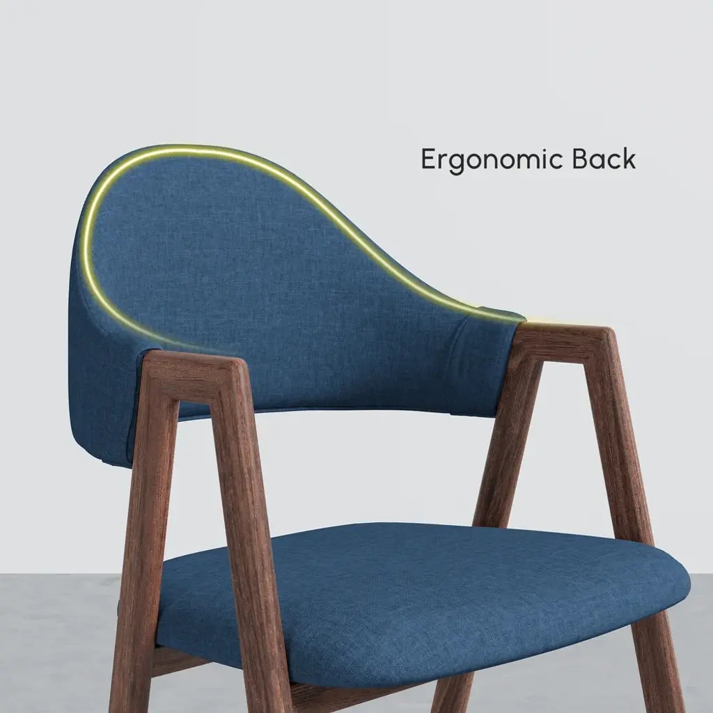 Bring a touch of style into your dining room with this set of four blue linen-upholstered dining chairs. The modern design features a curvaceous solid back for maximum ergonomics and added style. Soft but durable linen upholstery in rich blue, contrasted by brown carbon steel legs, allows this chair to be unparalleled. This is a perfect chair for family dinner or for those who entertain guests a lot, as it offers comfort with a stylish appeal.