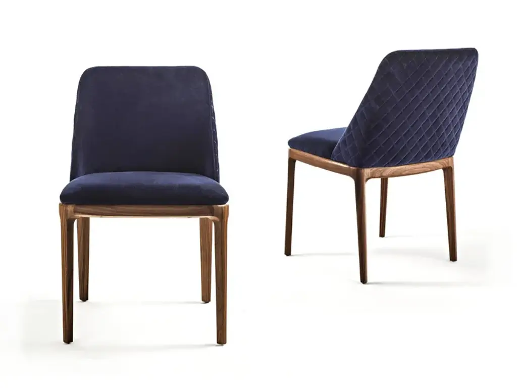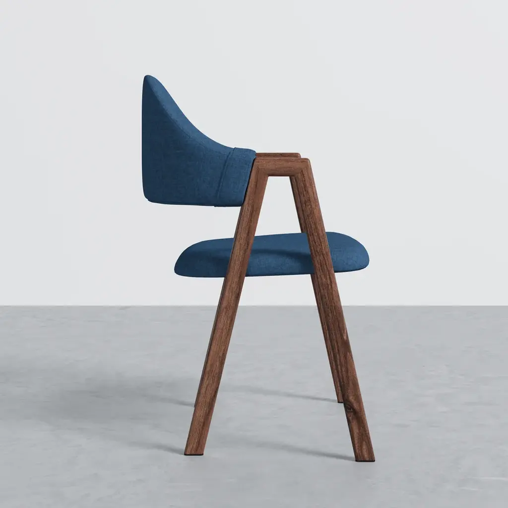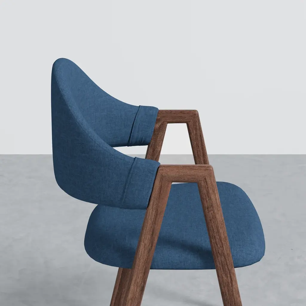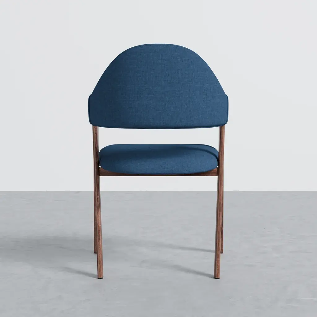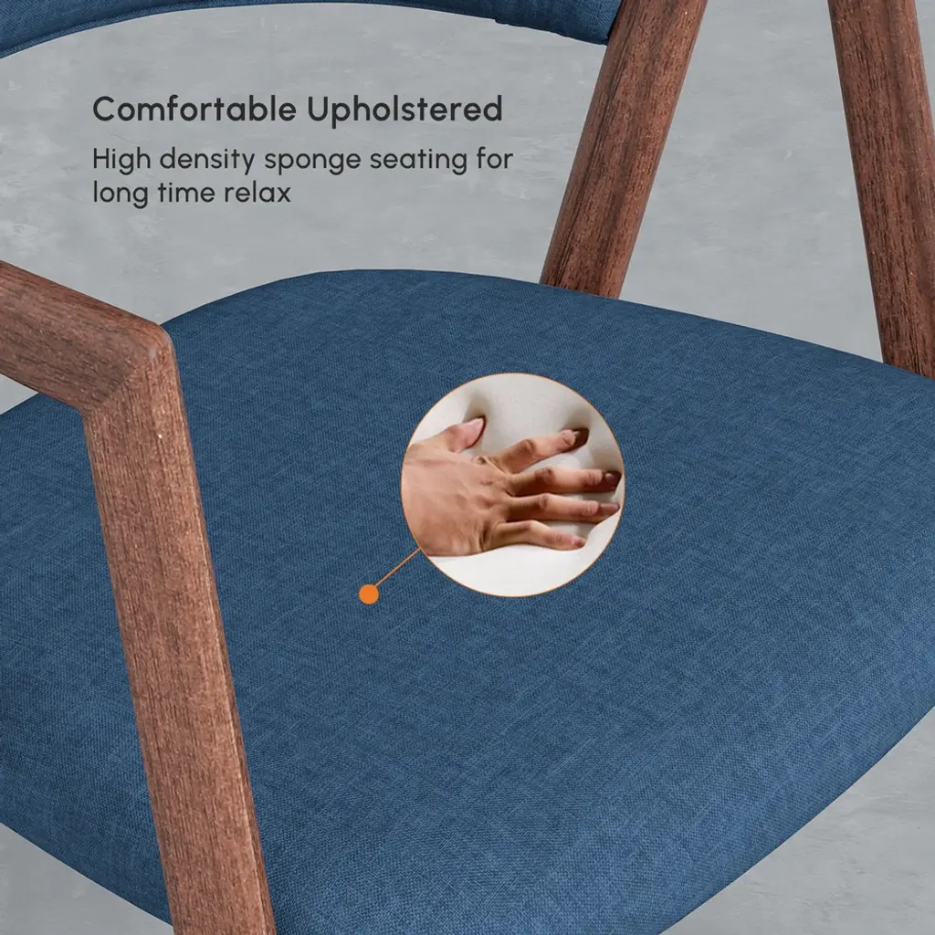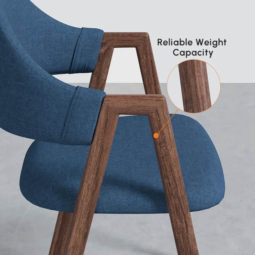 Bring a touch of style into your dining room with this set of four blue linen-upholstered dining chairs. The modern design features a curvaceous solid back for maximum ergonomics and added style. Soft but durable linen upholstery in rich blue, contrasted by brown carbon steel legs, allows this chair to be unparalleled. This is a perfect chair for family dinner or for those who entertain guests a lot, as it offers comfort with a stylish appeal.