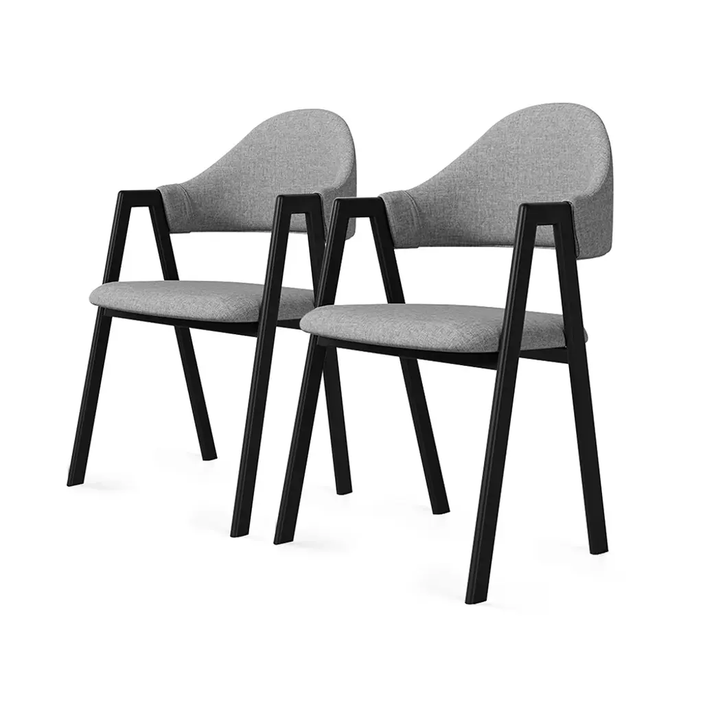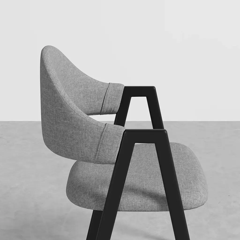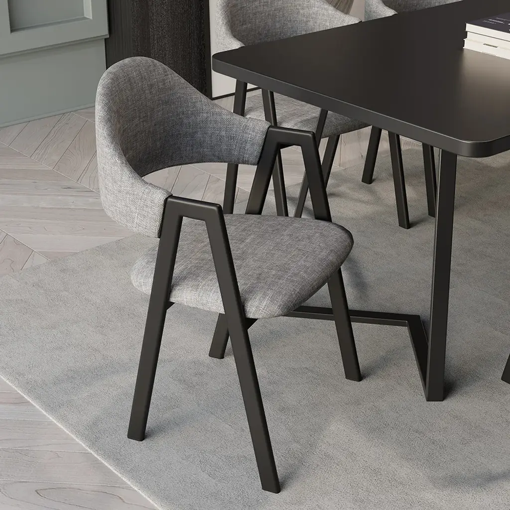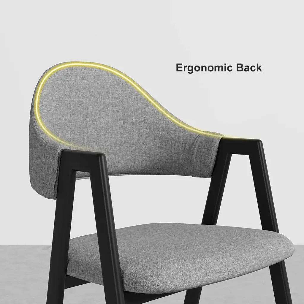 Update your dining room with this stylish gray linen upholstered set of 4 dining chairs. Comfort meets style with the curved back and armrests for great seating. The sturdy construction is featured on the carbon steel legs that contrast with the soft linen fabric to provide a very luxurious feel and excellent comfort while seated. Perfect for modern dining rooms, these chairs will indeed bring in elegance and relaxation.