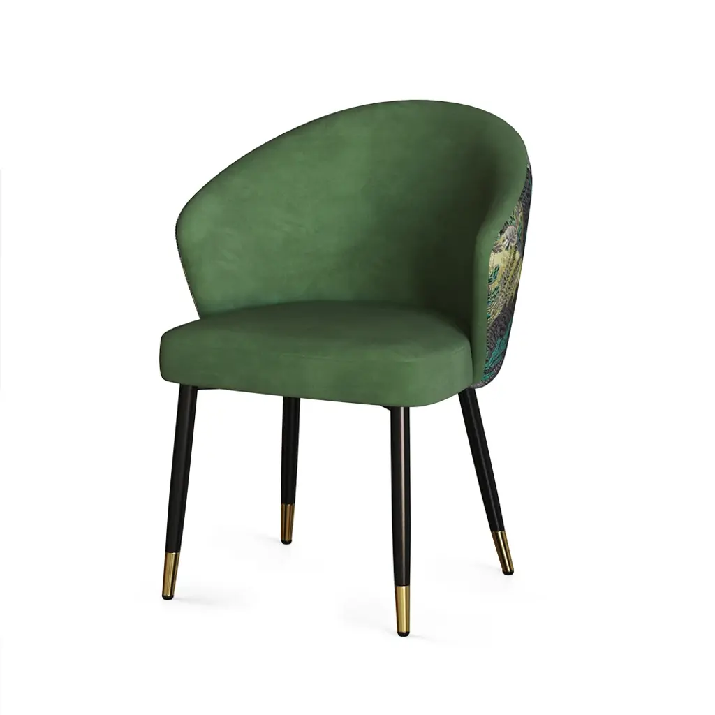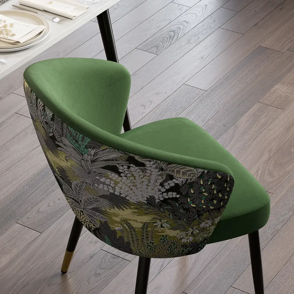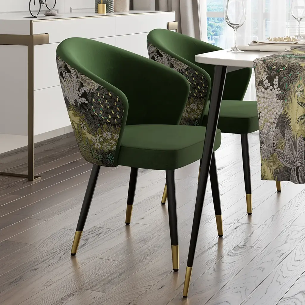 Add luxury to your dining room with this set of green velvet dining chairs. These luxurious chairs have a modern solid-back design draped in sumptuous velvet for both style and comfort. Strong metal and carbon steel legs in black and gold support these chairs to give any dining space a chic contrast and an utterly modern style. For gathering or not, these stylish yet very durable chairs are timeless for your home.