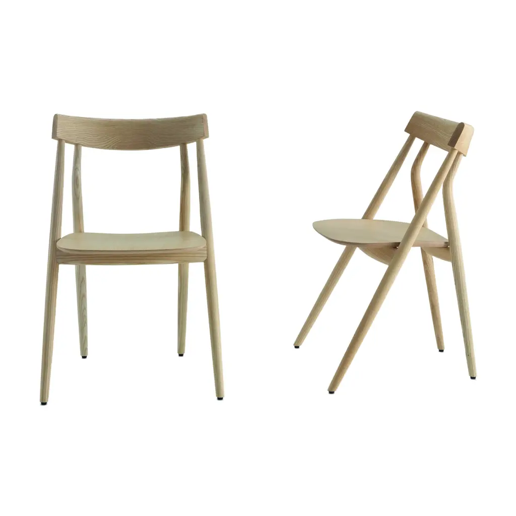 Set of 4, nude dining chairs by made by choice.Nude Collection with Harri Koskinen.Dimensions: 49 x 53 x 82 cmMaterials: OakFinishes: natural oak / painted blackAlso available: custom colors, upholstery category 2 (std. fabrics), upholstery category 1 (natural leather.February 2019, Directional design studio, Made by Choice, unveils its latest design piece in collaboration with the award-winning Finnish designer Harri Koskinen. The ‘Nude Chair’, originally commissioned for one of Finland’s most prolific chefs and restaurateurs, Pekka Terava, and his innovative Nude restaurant, is now integrated in to the Made by Choice design collection and available for custom-made orders. Harri Koskinen’s trademark design-thinking and aesthetics, lend a conceptual approach to product and spatial pres-ence, none more evident than in the bold new design piece. Crafted to exist as a unique dining chair, that both stacks beautifully and hangs neatly from a table top for effortless management of space, this ergonomic piece is crafted by some of the world’s finest artisans in Halikko, Finland, nurturing centuries of woodworking heritage. About Made by Choice: Nordic Happiness. Nordic Happiness is our grand theme and guiding star. Studies show that Nordic people are among the happiest on Earth. Nordic happiness is composed of authentic values and sustainable choices. The vision of Choice is based on the added value of collective creation while promoting sustainable Nordic values through authentic design. Rooted in the traditions of Finnish woodworks, Made by Choice is a creative powerhouse of collaborative thinkers, believers and makers, establishing a global brand for the 21st century. Committed to producing durable, bold and innovative designs, we combine contemporary woodworking methods and modern technology. Halikko is home to our 4000 square metre campus where we turn abstract concepts into tangible objects. Our team in our office in Helsinki coordinates all operations and installations. Made by Choice's agile, purpose driven approach means all new products are developed on demand, for a specific project and need, and carries the authentic story of it's reason of existence. Our products are developed and manufactured at our own factory in south-western Finland by some of the best craftsmen in the world. Choice is inspired by heritage and Nordic urban lifestyle. We are driven to explore the boundaries of our discipline to create new narratives. Choice collaborates with leading designers and ambitious interior architects on site-specific projects to create new urban spaces.Choice was founded by Lasse Laine, Sebastian Jansson and Niclas Ahlström – based on the common vision and mutual values to create a distinctive, value-driven brand and a new design heritage.