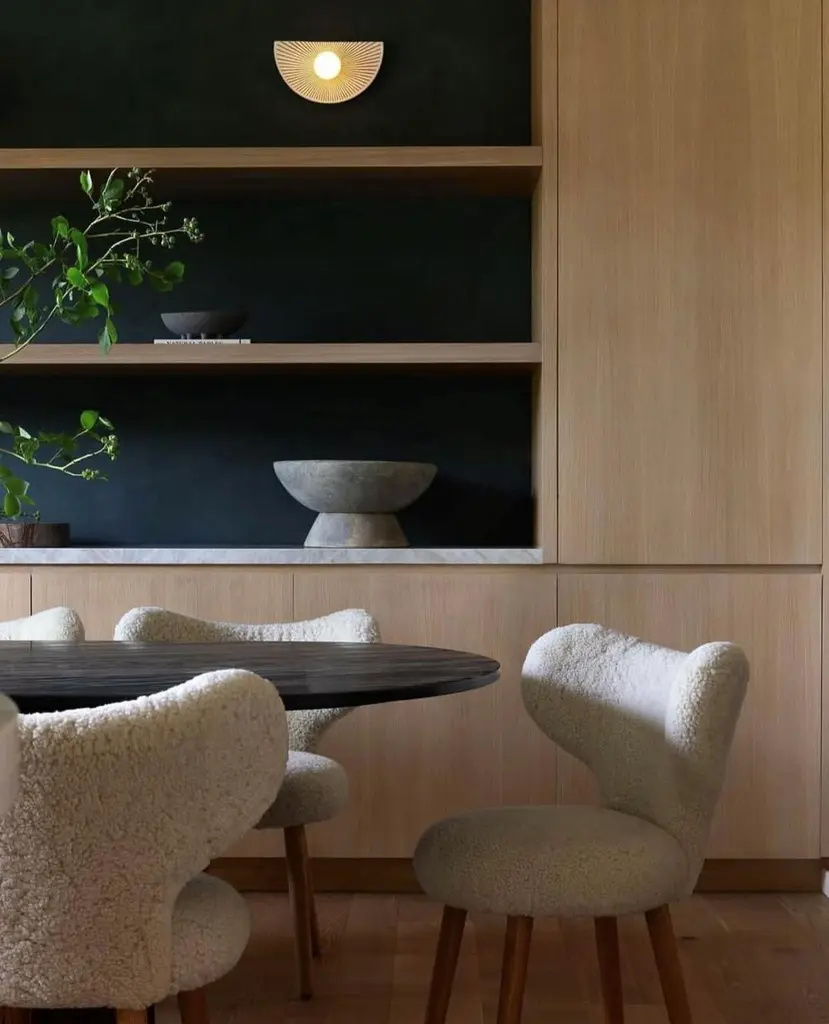 Set Of 4 White Dining Wng Chairs In Oak And Sheepskin Upholstery By Mazo Design